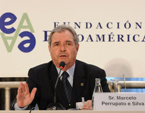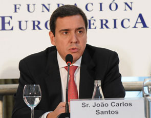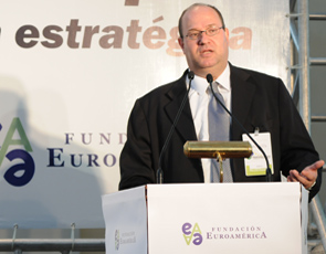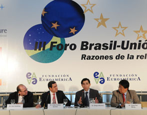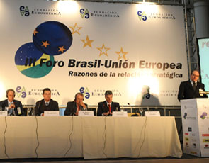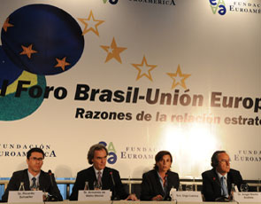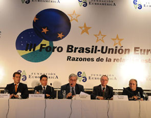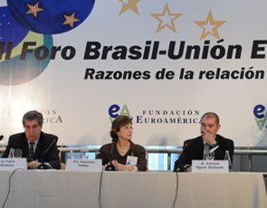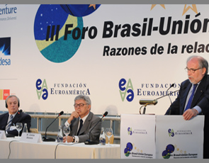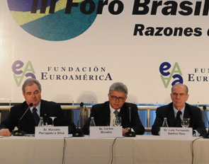 Carlos Solchaga, Presidente de la Fundación Euroamérica; Embajador Moreira, y Marco Aurélio Garcia, Assessor-Chefe da Assesoria Especial do Presidente da República (en atril) |