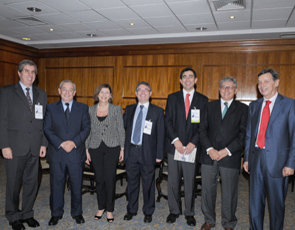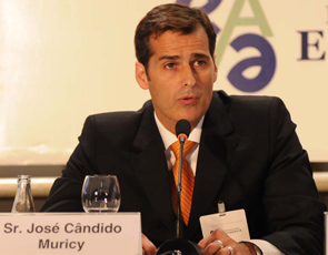 Juan-Miguel Villar Mir, Presidente da OHL; Luis Felli, Vice-presidente de Operações Agroindustriais, ETH Energía; Ramón Hernán, Diretor Geral para América do Norte e Brasil, Repsol YPF; Guilherme Lencastre, Presidente da Geração, Endesa Brasil, y Octavio de Carvalho, Diretor Geral da Nexans, Brasil (en atril) |