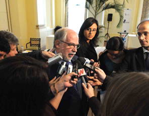 Marco Aurélio Garcia, Assessor-Chefe da Assesoria Especial do Presidente da República, entrevistado por la prensa |