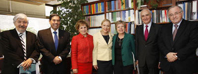 | Benita Ferrero-Waldner, junto a Alicia Bárcena, Secretaria Ejecutiva de la CEPAL, y los embajadores ante la Unión Europea que estuvieron presentes en el seminario. Les acompaña también Osvaldo Rosales, Director de la División de Comercio Internacional e Integración de la CEPAL |
