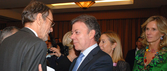 Emilio Cassinello, Vicepresidente de la Fundación Euroamérica, saluda y conversa con el Presidente Santos, en presencia de la Ministra Garmendia |