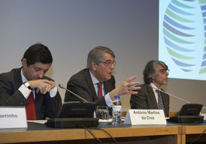 Carlos Zorrinho, Secretario de Estado de Investigación y Tecnología, Portugal; António Martins da Cruz, ex Ministro de Asuntos Exteriores, Portugal; Carlos Carnero, Embajador en Misión Especial para Proyectos en el Marco de la Integración Europea, España |