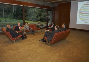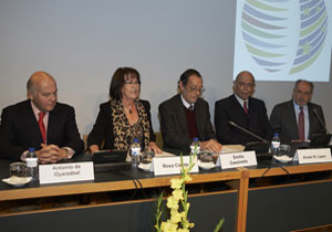 | Antonio de Oyarzábal, Vicepresidente del Real Instituto Elcano; Rosa Conde, Directora Fundación Carolina; Emilio Cassinello, Vicepresidente de la Fundación Euroamérica; Ernâni Rodrígues Lopes, Presidente de la Fundaçao Luso-Espanhola, y Emilio Rui Vilar, Presidente de la Fundaçao Caouste Gulbenkian |