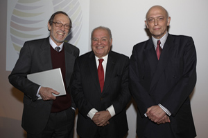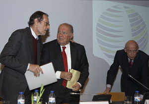 E. Cassinello, Vicepresidente de la Fundación Euroamérica, E. Iglesias, Secretario General Iberoamericano y E. Rodrígues, Presidente de la Fundación Luso-Espanhola |