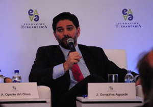 Primera jornada, segunda sesión: Juan Rivera, Socio y Director General de la oficina de Llorente&Cuenca en México, Director del área de comunicación financiera a nivel global; Antonio Oporto del Olmo, Consejero Ejecutivo del Banco Europeo de Reconstrucción y Desarrollo (BERD); Jaime González Aguadé, Presidente de la Comisión Nacional Bancaria y de Valores, México; Luis Téllez, Presidente de la Bolsa Mexicana de Valores; José Manuel González-Páramo, Consejero Ejecutivo responsable de regulación e instituciones y Presidente del Consejo Asesor Internacional de BBVA, y Rudy Araujo, Secretario General de la Asociación de Supervisores Bancarios para las Américas, ASBA |