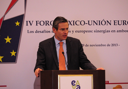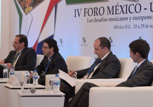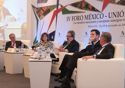 Segunda jornada, segunda sesión: Thomas Neisinger, Director Regional para América Latina y el Caribe, Ministerio de Relaciones Exteriores, Alemania; Mª del Coriseo González-Izquierdo, Consejera Delegada del ICEX, España Exportación e Inversiones, España; Manuel Alabart, Embajador de España en México; Francisco Nicolás González Díaz, Director General de ProMéxico, Secretaría de Economía, México; Chris Bryant, Shadow Office Minister, Parliament, U.K., y Sergio Contreras, Vicepresidente de COMCE (Consejo Empresarial Mexicano de Comercio Exterior, Inversión y Tecnología) y Presidente de la Sección para Europa, México |