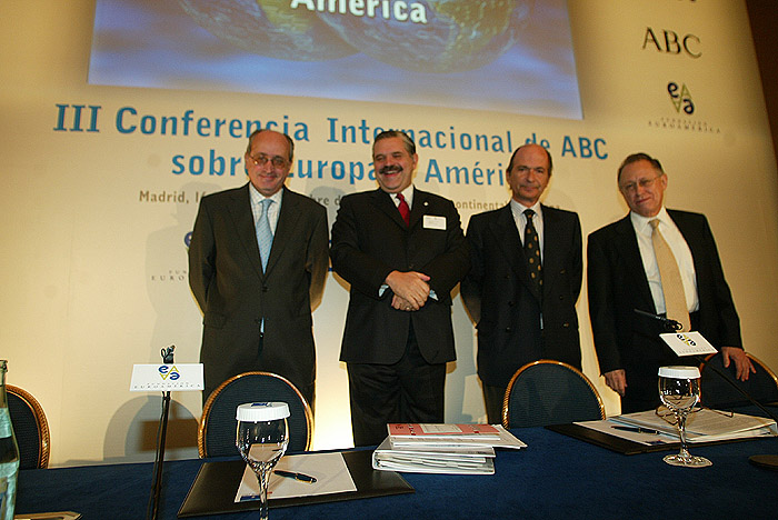 | Pedro Mejía, Secretario de Estado de Turismo y Comercio de España; Ricardo López Murphy, Presidente del Movimiento Federal Recrear de Argentina; Carlos Rodríguez Braun, Catedrático de la Universidad Complutense de Madrid y Fernando Solana, ex Ministro de Asuntos Exteriores de México |