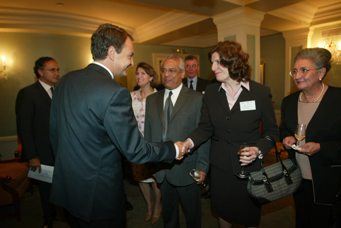 | José Luis Rodríguez Zapatero, Presidente del Gobierno de España; Mª Lourdes Dieck Assad, Embajadora de México ante la Unión Europea y Juan Antonio García Villa, Subsecretario de Normatividad, Inversión Extranjera y Prácticas Comerciales Internacionales de México, con su esposa |