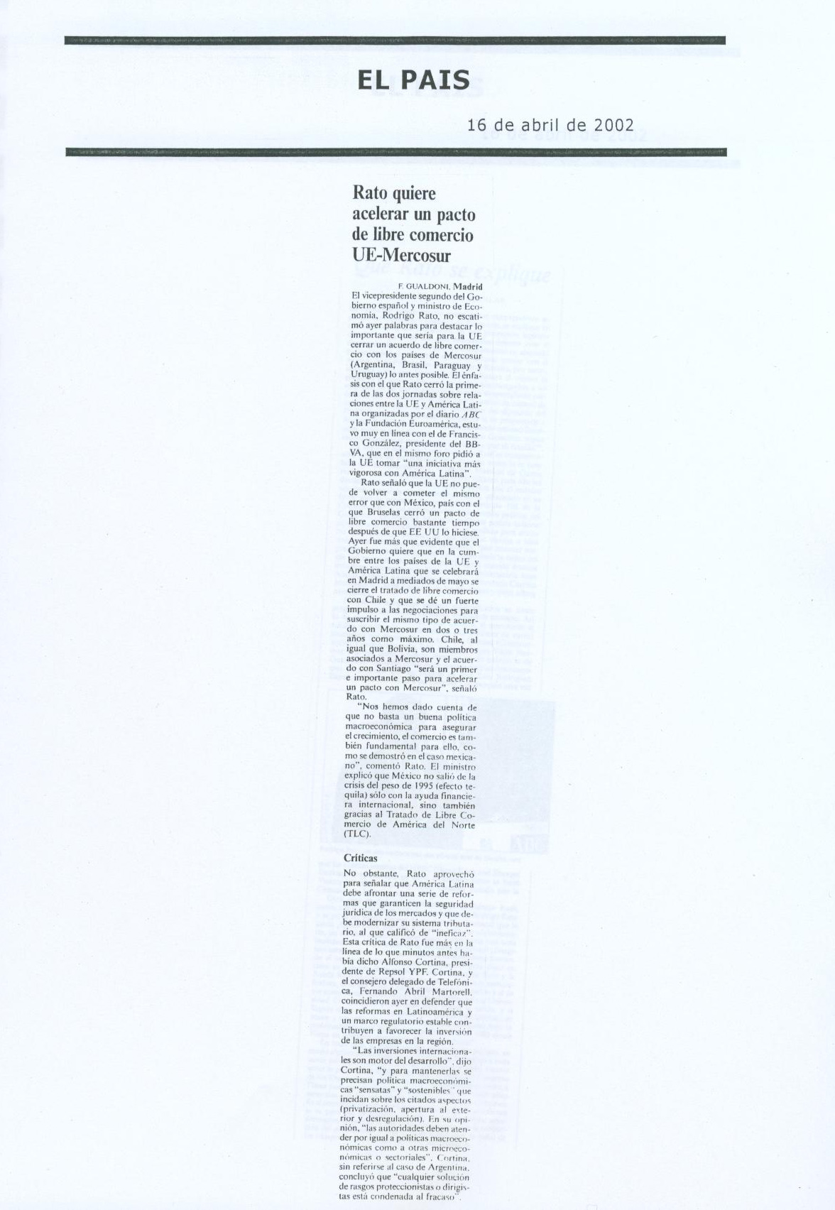 Rato insta a la UE a negociar...