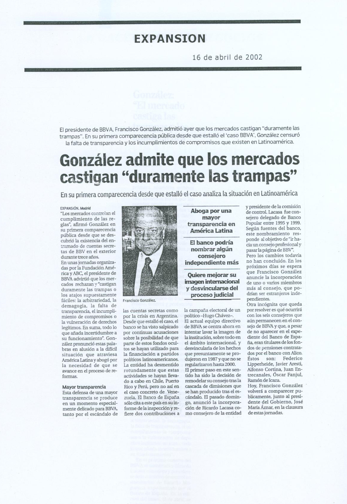 González admite que los mercados...