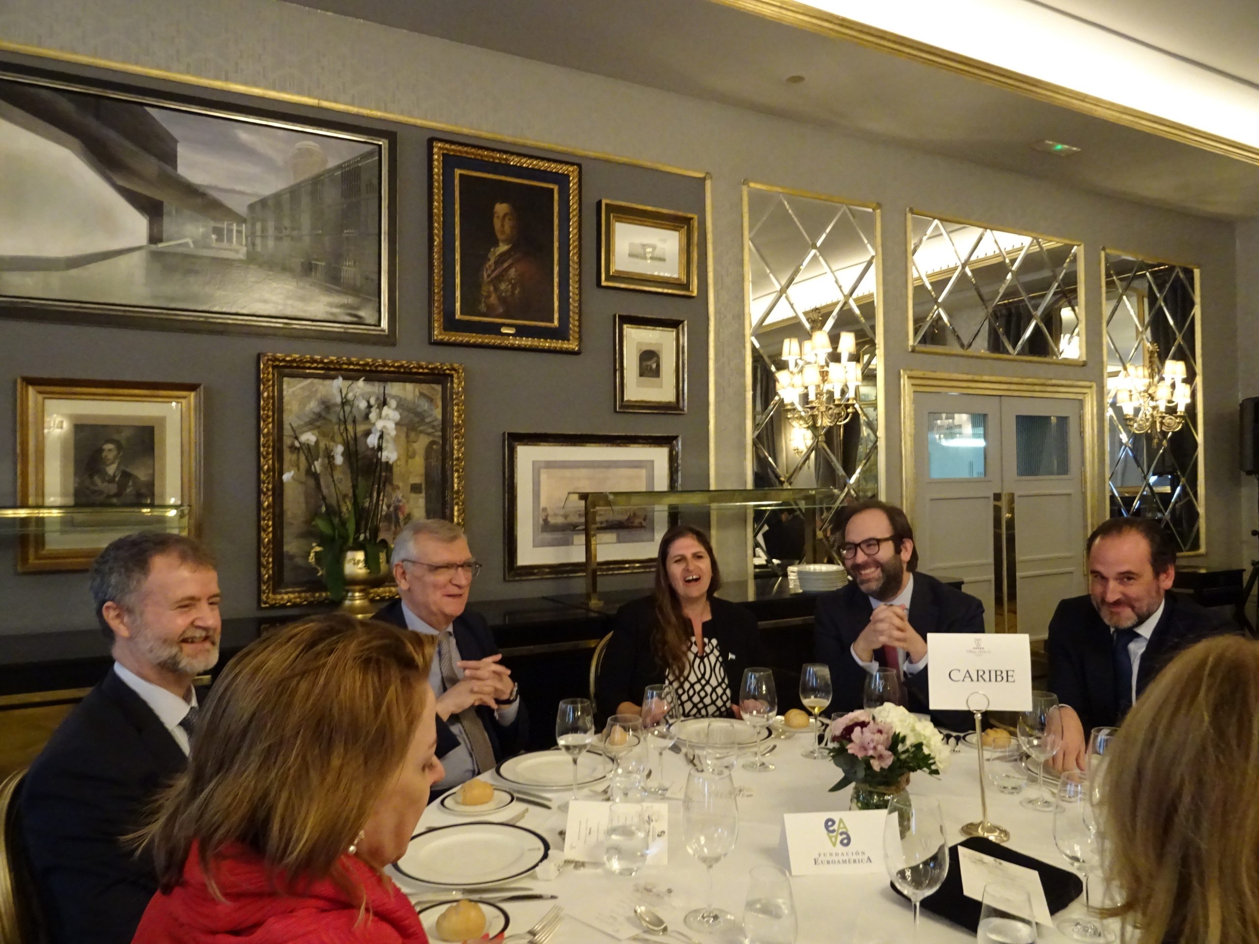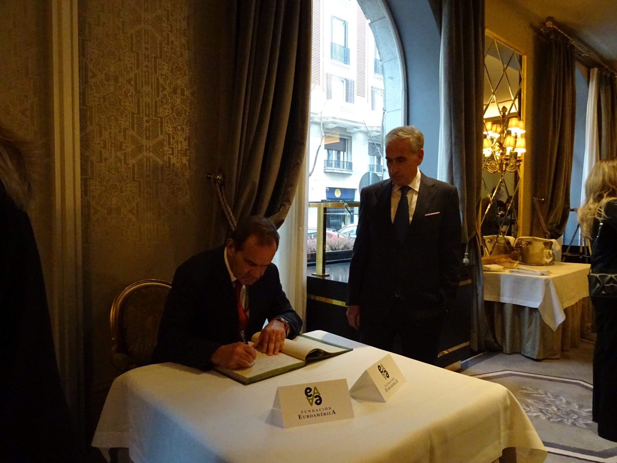 Durante el coloquio posterior con los asistentes se abordaron diferentes temas como la situación actual de las negociaciones del acuerdo de la Unión Europea con Mercosur o las actualizaciones de los acuerdos con Chile o México; la próxima Cumbre de Jefes de Estado y de Gobierno, que tendrá lugar en República Dominicana; lo necesario de la existencia de una voz única en América Latina y el Caribe; las nuevas líneas de la Segib en relación a los nuevos desafíos actuales o la importancia de la Economía Naranja en la región, entre otros.