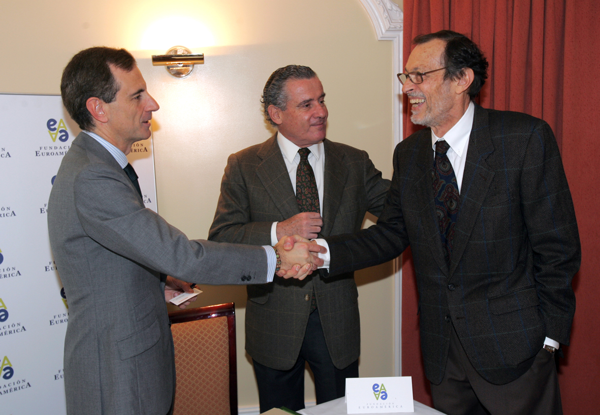 | El otoño pasado, ante la proximidad de las elecciones generales en España, la Fundación Euroamérica decidió invitar a los responsables de los programas electorales de los dos principales partidos políticos: Juan Costa, del PP, en la oposición y Jesús Caldera, ministro de Trabajo y Asuntos Sociales, del Partido Socialita Obrero Español. Costa, ex ministro de Ciencia y Tecnología en el último gobierno de José Mª Aznar, aceptó la invitación en noviembre de 2007 para exponer las puntos programáticos del Partido Popular. El que fuera Secretario de Estado de Hacienda y de Comercio y Turismo con el ministro Rodrigo Rato defendió, en la comida-coloquio, organizada en Madrid, la necesidad de construir una sociedad avanzada, competitiva y cohesionada para poder atender las necesidades de los ciudadanos. Para Juan Costa, el PP debe presentarse como un partido de centro, que busca los consensos básicos y la participación de la sociedad civil para lograr la calidad democrática, el pluralismo y el bienestar. |