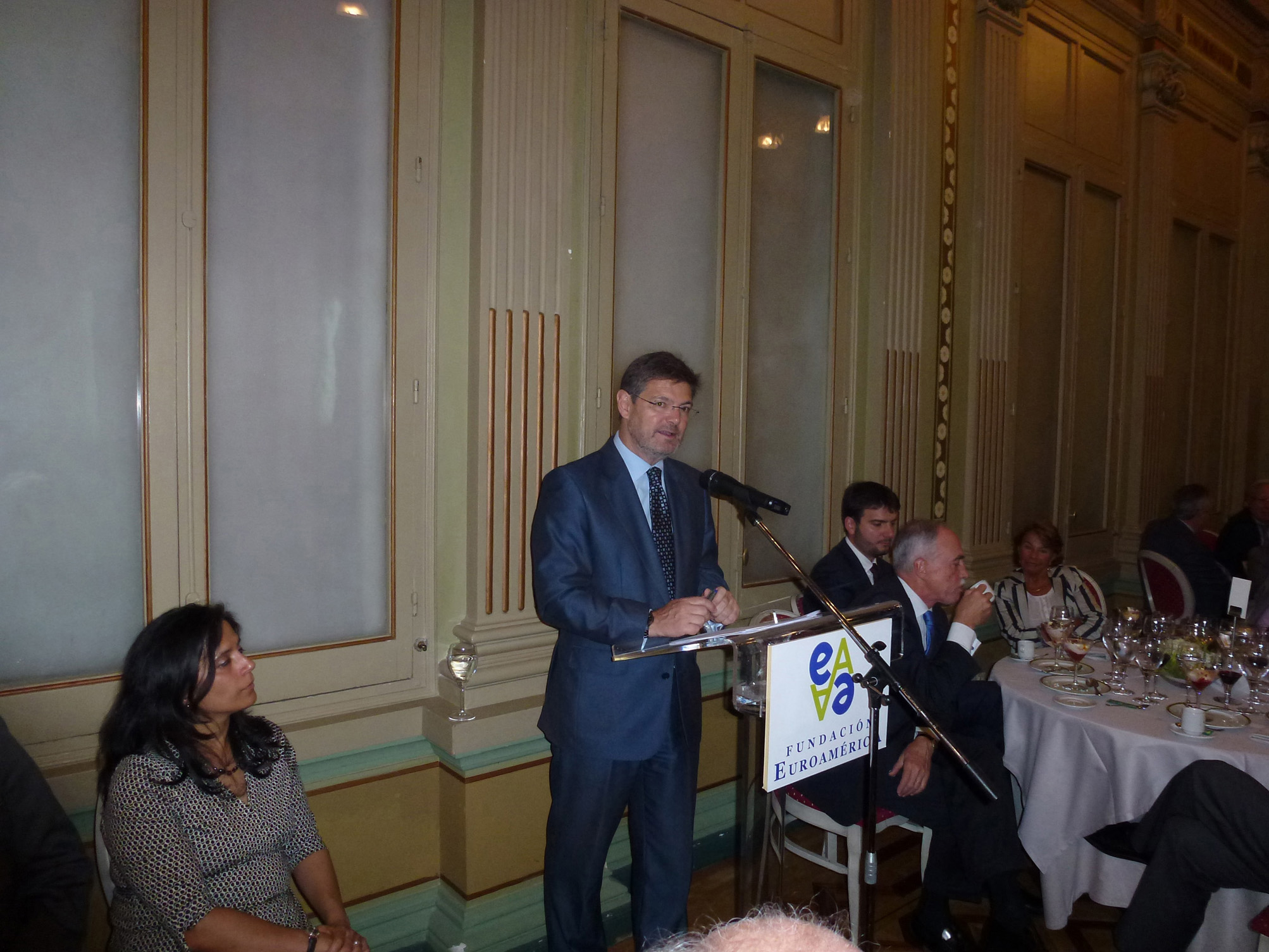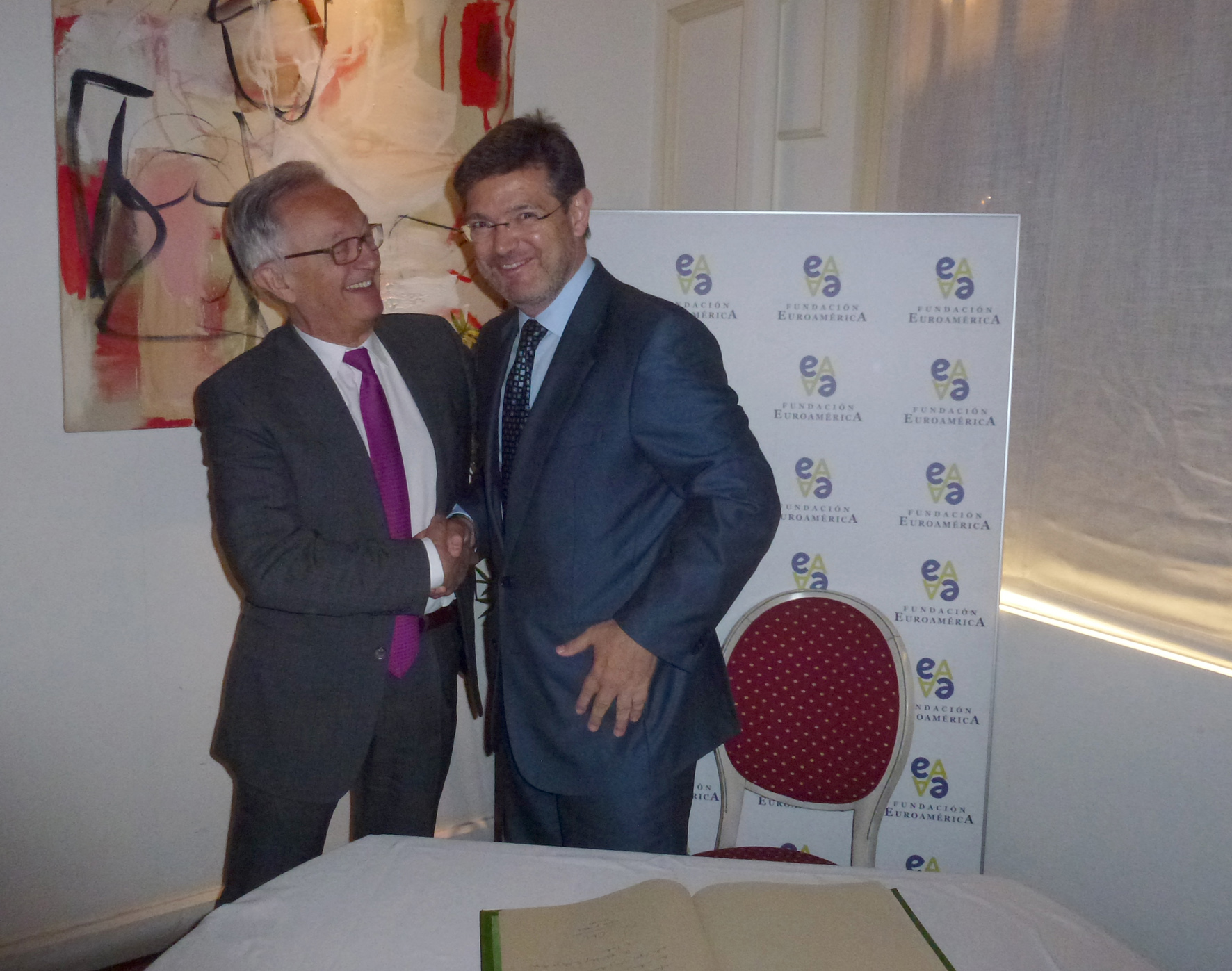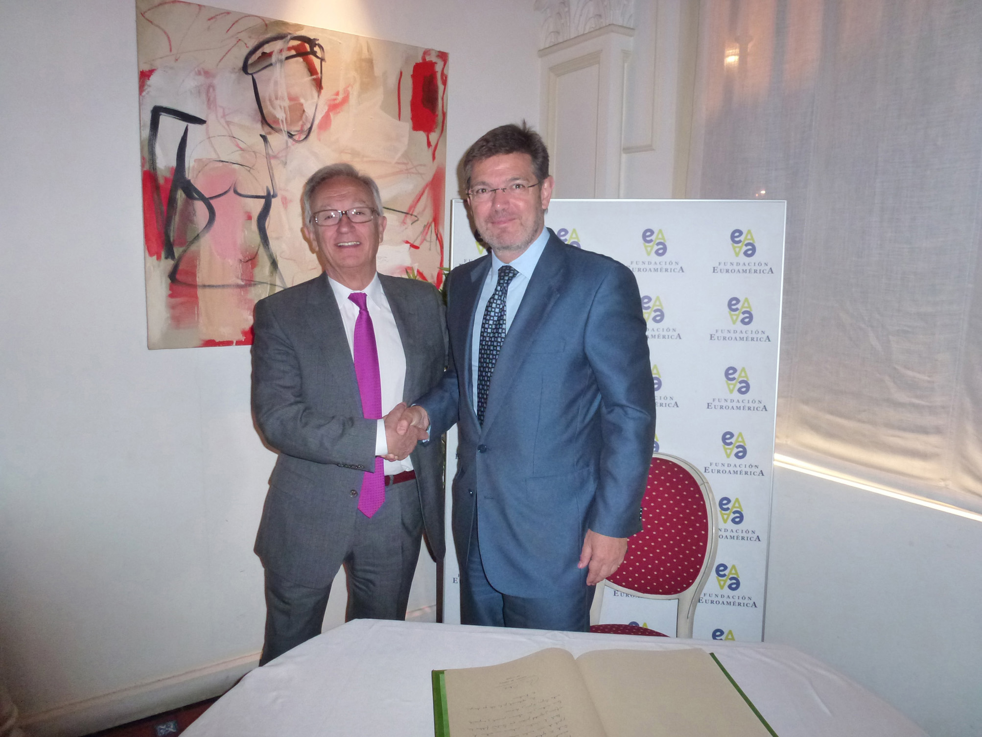 La Fundación Euroamérica celebró un nuevo almuerzo-coloquio, con su formato habitual, en el que contó como invitado de honor con el Ministro de Justicia, Rafael Catalá, quien es muy cercano a la fundación, ya que ha participado en varias de sus actividades, incluidos los dos últimos foros celebrados en México D.F. y en Miami, entonces como Secretario de Estado de Infaestructuras, Transporte y Vivienda, o el celebrado en Santiago de Chile en el año 2000, como Subsecretario de Hacienda.