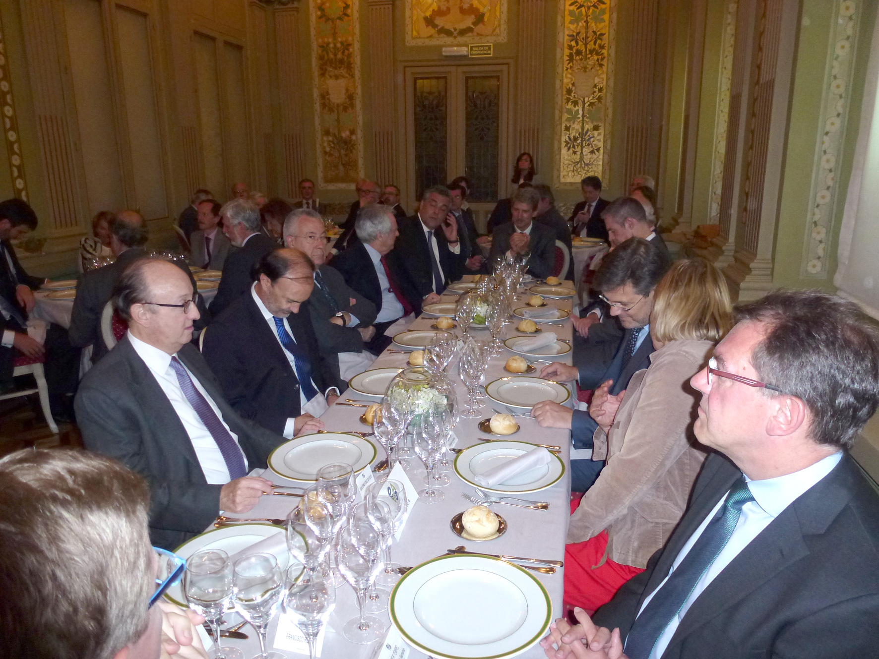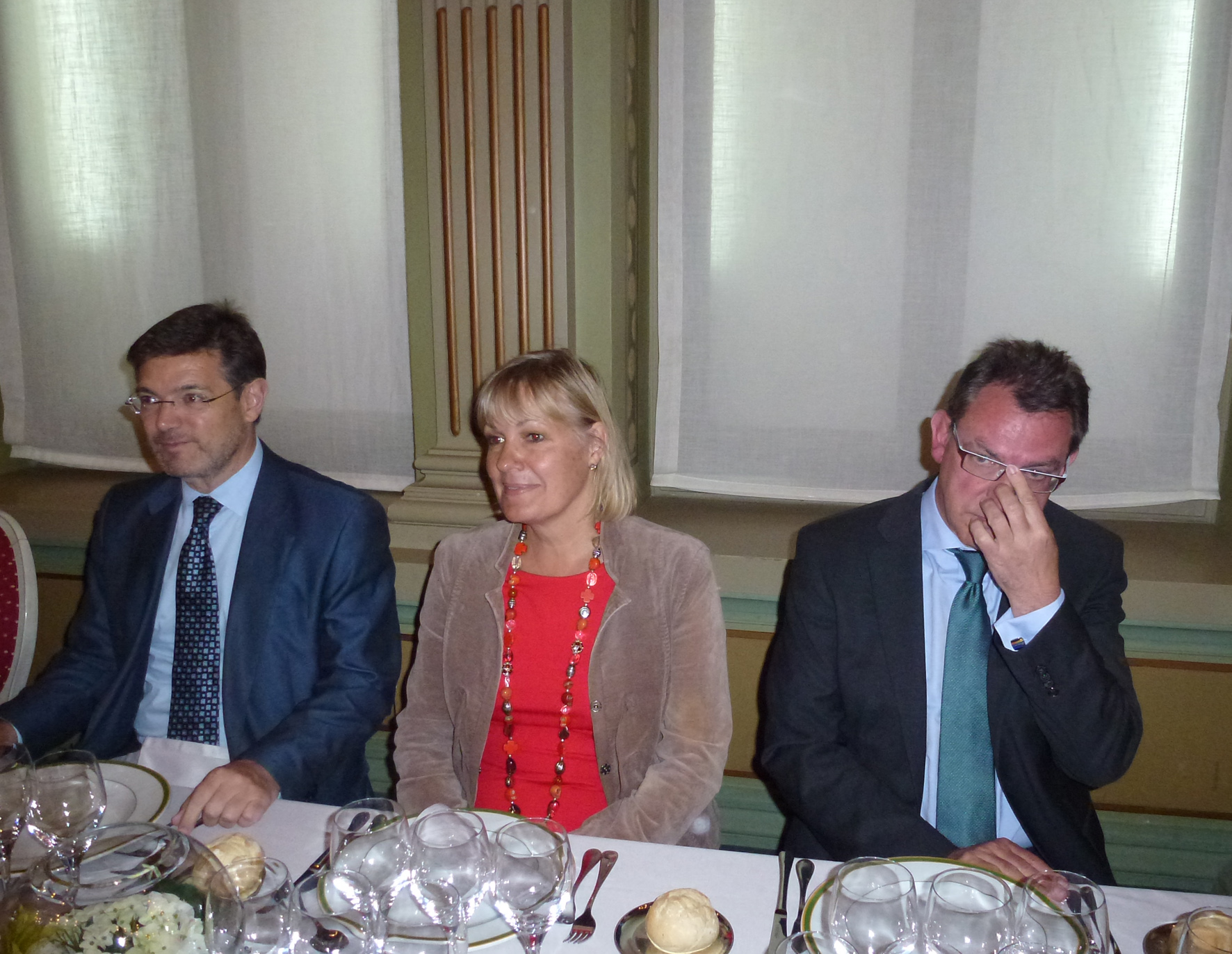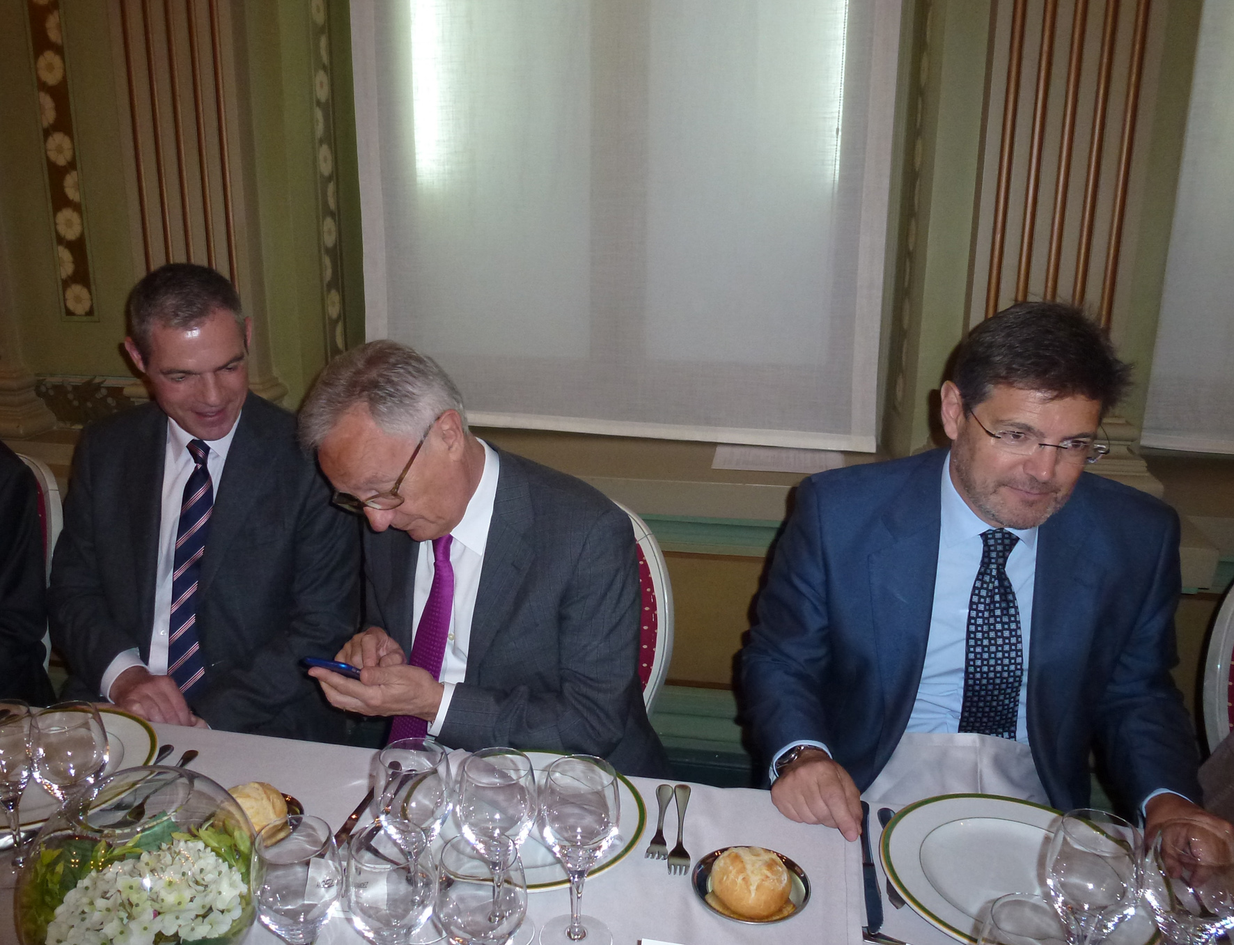 En el almuerzo, en ambiente distendido, que contó con la presencia del Secretario de Estado de Cooperación Internacional y para Iberoamérica, Jesús Gracia, así como con los embajadores de Francia, Jérôme Bonnafont, de Suecia, Cecilia Julin, y de Alemania, Peter Tempel, el Ministro de Justicia comenzó con una intervención en la que señaló las medidas más importantes que está llevando a cabo su ministerio, destacando el proceso de digitalización, que estiman acabar antes del fin de  la presente  legislatura, y con el que prevén, no sólo un importante ahorro de costes, sino también de tiempos en los procesos judiciales. Asimismo, y por la naturaleza latinoamericana de nuestra fundación, enumeró los proyectos que, en materia de justicia, existen entre nuestro país y América Latina, destacando el recientemente creado Centro Iberoamericano de Arbitraje, que tendrá su sede en Costa Rica y su secretaría en Madrid y cuyo Presidente, Luis Martí Mingarro, presente en el almuerzo, ya nos adelantó en un desayuno que organizamos en su honor en 2014 en la sede de nuestra fundación.