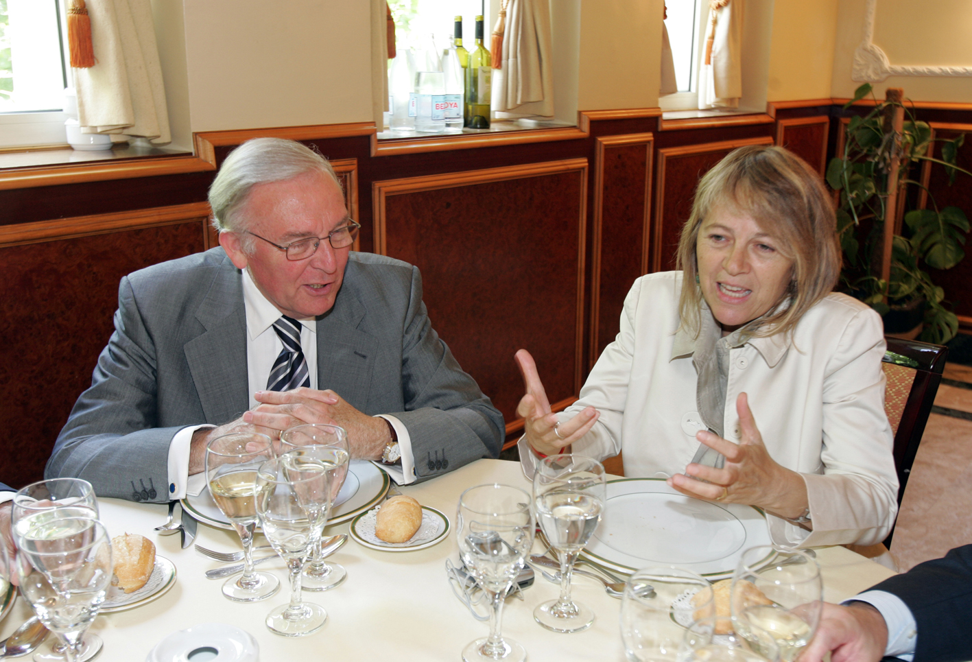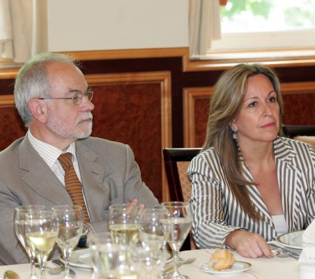 El pasado junio, Trinidad Jiménez hizo balance de sus primeros meses al frente de la Secretaría de Estado para Iberoamérica del Ministerio de Asuntos Exteriores y Cooperación en el marco de uno de los encuentros con miembros del Patronato y colaboradores de la Fundación, al que asistieron numerosos embajadores latinoamericanos -del Perú, Argentina, El Salvador, Guatemala y Nicaragua-y europeos -de Alemania e Italia-. Además de viajar por el continente americano, la señora Jiménez ha trabajado especialmente en la preparación de la XVII Cumbre Iberoamericana de Santiago de Chile sobre la necesidad de conseguir la cohesión social en Latinoamérica.