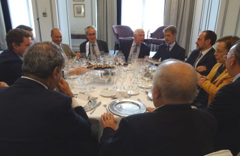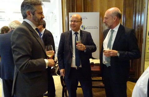 Con la asistencia de empresarios miembros de nuestro patronato y colaboradores, instituciones relacionadas con América Latina así como una amplia representación de embajadas, se ha tenido la oportunidad de presenciar un interesante coloquio dirigido por Ramón Jáuregui presidente de la Fundación que centró la primera parte en la situación actual de Europa para seguidamente hablar sobre América Latina . A continuación los asistentes pudieron plantear preguntas al invitado de honor.