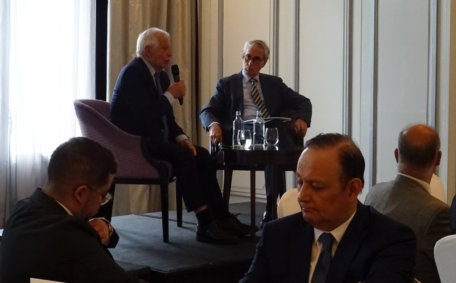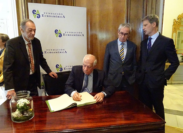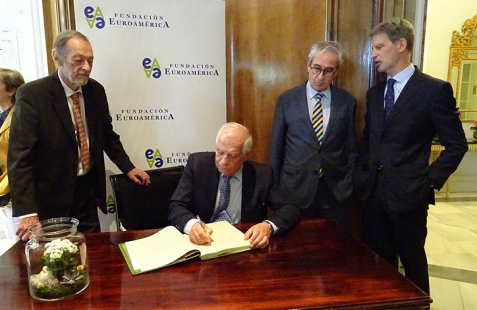La Fundación Euroamérica ha recibido al AR/VP de la Comisión Europea Josep Borrell en un almuerzo-coloquio celebrado en su honor en el Hotel Palace de Madrid con el apoyo de CAF Banco de Desarrollo de América Latina .