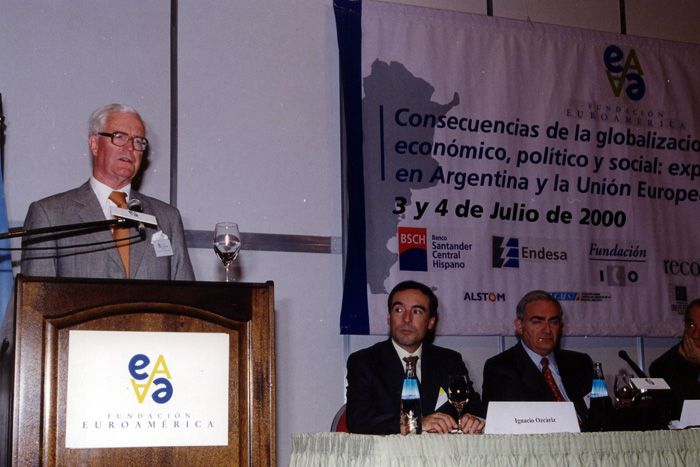 | Intervención del ex Ministro del Reino Unido Douglas Hurd, ante Ignacio Ozcáriz, Presidente de Recol Networks, Alfredo Llorente, Presidente de Enersis, y José María Amusátegui, Presidente del BSCH |