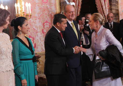 Madrid, 25 de enero de 2012/ Benita Ferrero-Waldner, presidenta de las Fundaciones Euroamérica y EULAC, ha asistido a la cena en honor del Presidente de la República del Perú, Sr. Ollanta Humala, ofrecida por Sus Majestades los Reyes, en el Palacio Real de Madrid.