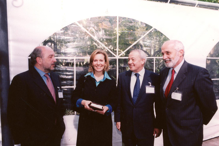 | Joaquín Almunia, ex Ministro de Trabajo, España; Noemí Sanín, Embajadora de Colombia en España; Carlos Solchaga, ex Ministro de Hacienda, España, y Luís Yagüe Jimeno, Presidente Grupo Santander Colombia. |