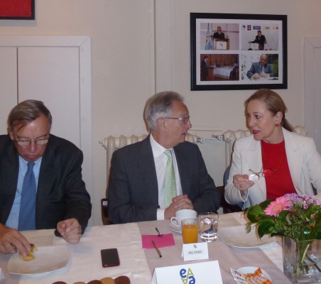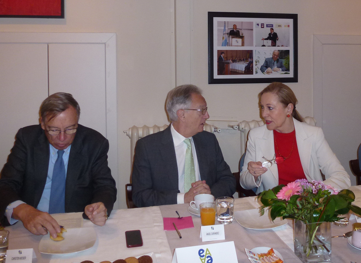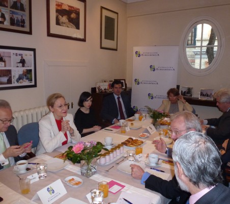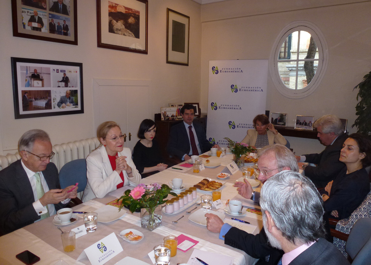 En la sede de la Fundación Euroamérica se celebró un desayuno-coloquio con Almerino Furlan como invitado de honor, quien comenzó su intervención destacando la numerosa presencia de ciudadanos de procedencia italiana que viven fuera de su país. Su presencia en España se ha incrementado sensiblemente pasando de 60.000 en el año 2003 a 200.000 en la actualidad, debido en parte a la crisis de Argentina lo que les obligó a salir hacia Europa y en particular a España. En cuanto a empresas hay un total de unas 500 de diferentes tamaños. Se comentó la actual situación política en Italia con el reciente nombramiento de Matteo Renzi como Primer Ministro lo que supone no solo un cambio generacional sino de actitud y ello está generando gran expectación ya que así como España ya ha hecho parte de sus deberes y reformas, Italia debe de hacerlos. Es un país muy corporativo lo que le impide flexibilidad a cambios. Hay que incentivar la inversión y reducir los impuestos así como favorecer el emprendimiento desde la escuela y mejorar la educación recuperando para ello la clase docente la credibilidad en parte perdida. Destaca el perfil competitivo del pueblo italiano que se refleja en el gran número de pymes, lo que favorece la innovación. España e Italia son países complementarios, comentó, y unidos podrían tener más peso en Europa. |