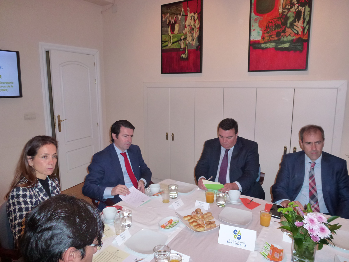 Carlos Vogeler comenzó su intervención indicando que el turismo es el cuarto sector en exportaciones del mundo, que genera un billón y medio de dólares al año, con un impacto del 10% en el PIB mundial. El turismo es una actividad productiva con un gran aporte en la economía y en la sociedad de los países y está formado por empresas de distinto tamaño que dan servicio a las personas que se desplazan a otros países por diversas razones: ocio, trabajo, religión, deporte, gastronomía, aprendizaje de idiomas, etc. A continuación habló de la campaña de la OMT «Líderes mundiales por el turismo» que tiene como objetivo conseguir que el turismo sea una prioridad en la agenda política de los gobiernos que han de verlo como vehículo para estimular la economía y el empleo de sus respectivos países o regiones. Igualmente explicó el Código Ético Mundial para el Turismo, documento de adhesión voluntaria que recoge un conjunto de diez principios que contemplan aspectos económicos, sociales, culturales y ambientales, dirigido a los distintos actores que intervienen en la actividad turística con el objetivo de maximizar sus beneficios , minimizando al máximo los aspectos negativos que puedan derivarse de ella. Se aspira a convertir este Código en un tratado de aplicación internacional. Asimismo habló de la Agenda 2030 de las Naciones Unidas con sus 17 objetivos, y del papel que el turismo tiene en la consecución de los mismos. Comentó que la OMT ha elaborado su programa de trabajo basado en dos puntos fundamentales: – La competitividad y calidad. – La sostenibilidad y la ética: el crecimiento ha de ser responsable y sostenible. Explicando a continuación los tres retos fundamentales que tiene el turismo en la actualidad: – La conectividad, que en algunos países del mundo es preocupante, ya que sólo es posible por medios aéreos y existen situaciones (monopolios/duopolios, altas tasas aéreas, etc.) que afectan negativamente al turismo. Se habló de la importancia de la integración regional para el “multidestino turístico” que es una fórmula muy exitosa para el desarrollo de este sector, así como de la “política de cielos abiertos”. – La facilitación de los viajes: Se comentaron los requisitos que se exigen a una persona para desplazarse de un lugar a otro, de las políticas de visados, y de la aplicación de la tecnología como solución a muchos de los problemas que se plantean. – La seguridad vinculada con el turismo: es necesario mantener unos sistemas de seguridad que ofrezcan total confianza al turista y, al mismo tiempo, llevarse a cabo de una forma discreta, sin que resulten intimidatorios. Para ello es fundamental establecer una política alineada entre las autoridades de seguridad y las de turismo de un país o región. Concluyó este punto diciendo que “la mejor gestión de crisis es una buena gestión de riesgos”. Resaltó igualmente la importancia del partenariado público privado, comentando que la OMT está abierta a socios no gubernamentales y de hecho cuenta con 450 afiliados privados Tras su intervención, y como es habitual, el Sr. Vogeler respondió a las preguntas que le formularon los asistentes al desayuno y que tocaron diferentes temas como: – La necesidad de introducir el turismo en la educación de colegios y universidades, para que llegue a formar parte del ADN de las sociedades y sea suficientemente valorado. – La transversalidad del turismo que ha de existir en los gobiernos, tanto de los países como de las ciudades, ya que afecta a diferentes áreas. – La necesidad de que el turismo sea una política de estado y no una política de gobierno. – La relación del turismo y los medios, y del turismo y la migración. – La importancia del análisis de la cadena de servicios que se le ofrece al turista desde que llega a su destino hasta que se va de él. – El grupo de trabajo que se ha creado entre los ministros de turismo de América Latina y de Asia, para favorecer esta actividad entre las dos regiones, entre otros temas. |