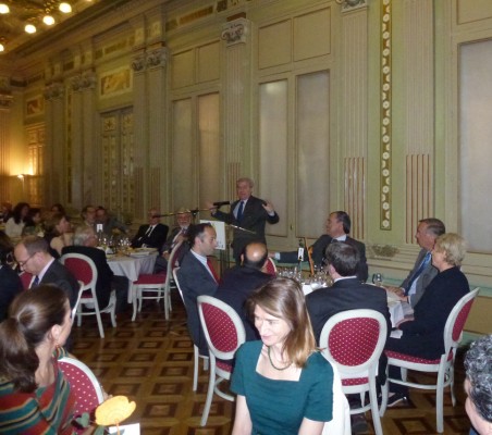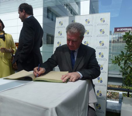 | El almuerzo-coloquio con César Antonio Molina, Director de la Casa del Lector, fue patrocinado por la Fundación Germán Sánchez Ruipérez. La Casa del Lector se constituye como un espacio desde donde experimentar con la lectura, sus nuevas manifestaciones, y su promoción. El director defendió la importancia de la lectura para la cultura y habló de la institución, que cuenta con el gran apoyo financiero de la FGSR. Respaldó el formato clásico del libro pero los nuevos rumbos tecnológicos de la lectura deben ser tomados muy en cuenta. En la Casa del Lector “tenemos una biblioteca, sin libros”, señaló. Después de su exposición se generó un extenso debate con variedad de preguntas, y Molina concluyó su intervención alentando a invertir en cultura: “cultura, inversión; cultura, inversión,…”. |
