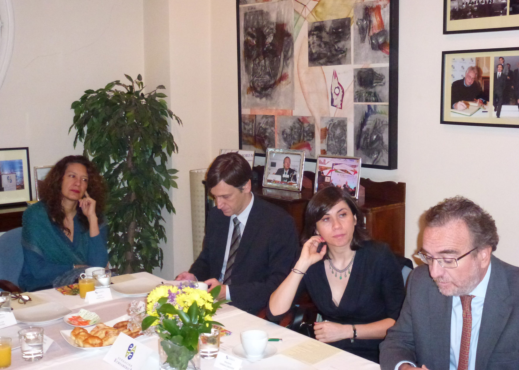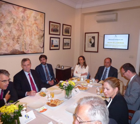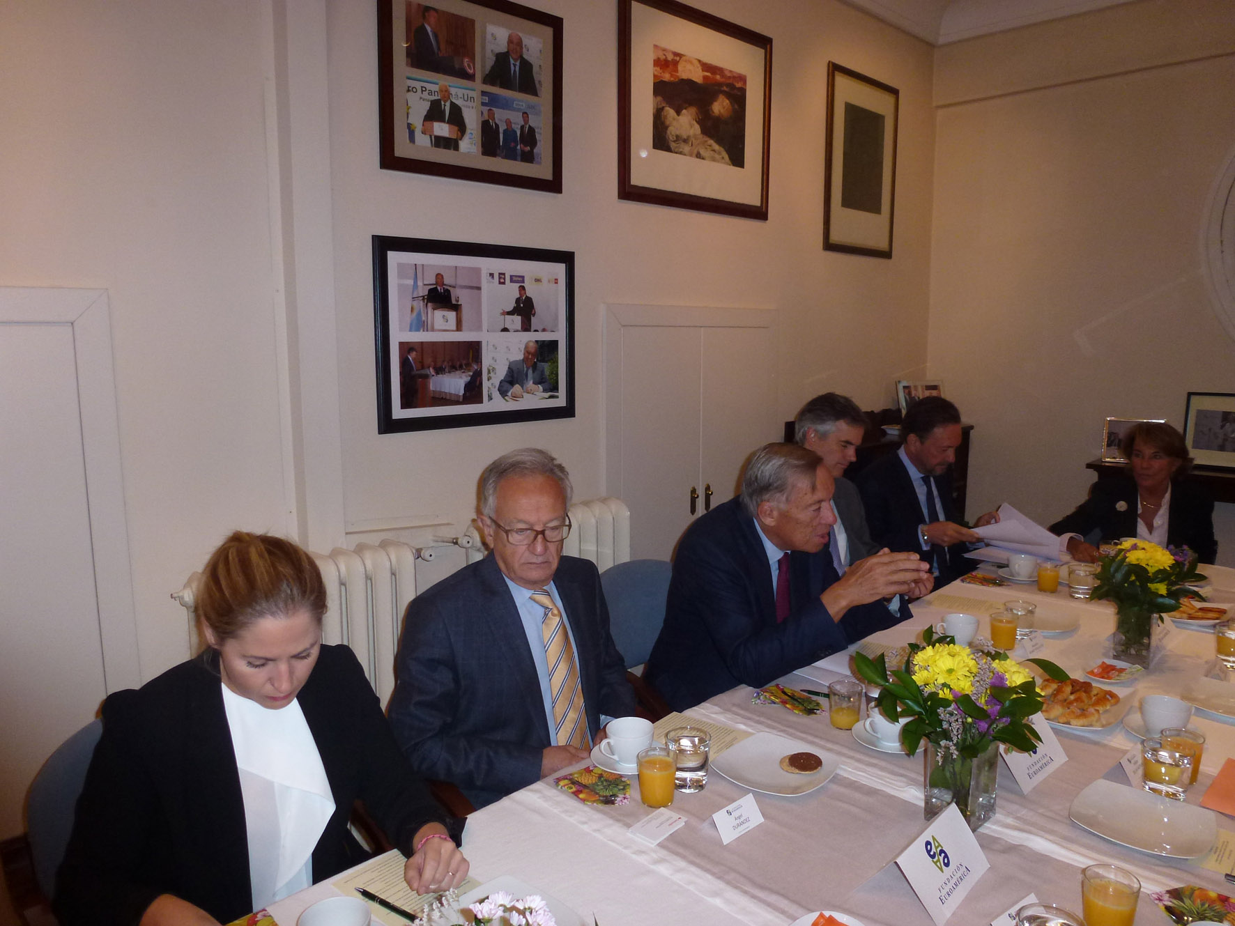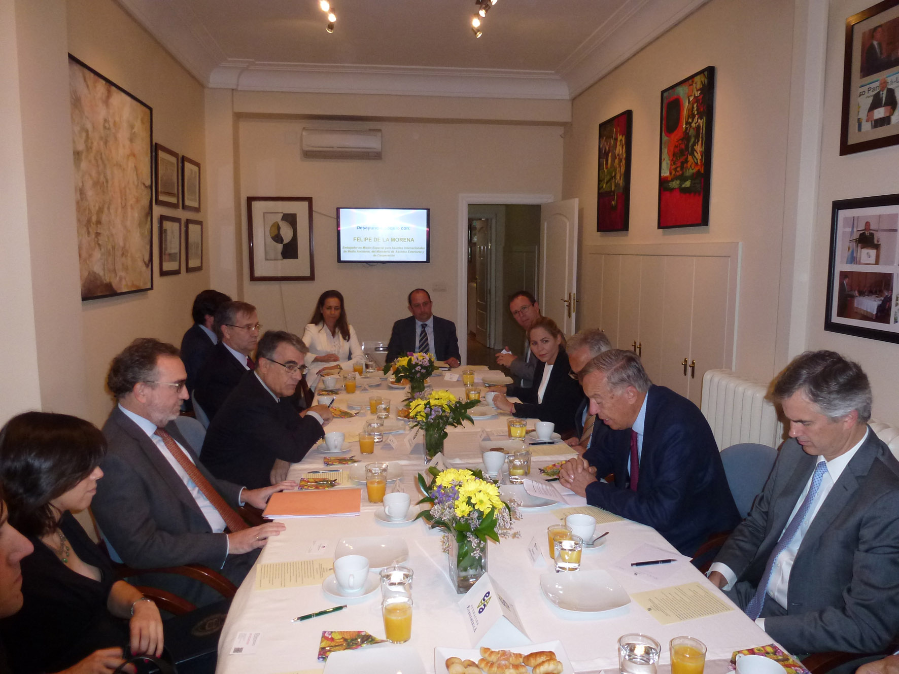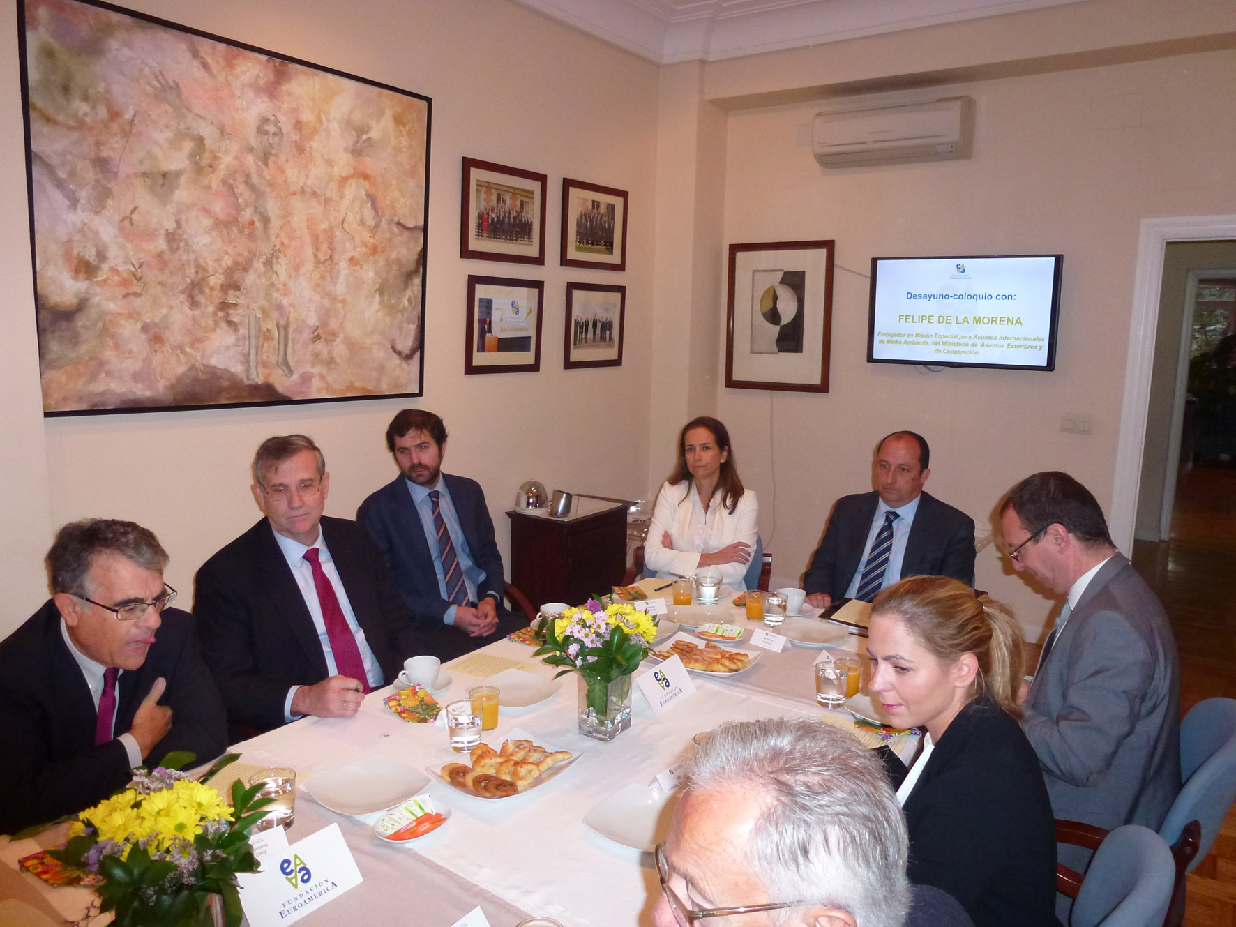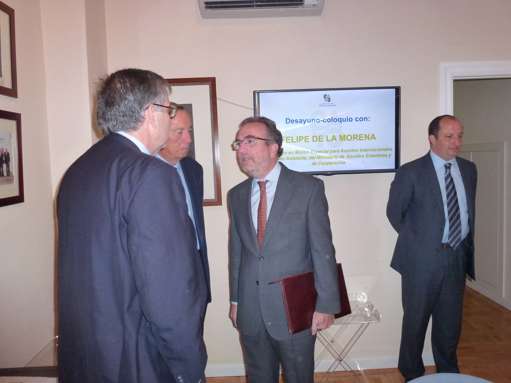 El Embajador de la Morena comenzó su intervención afirmando que ya nadie cuestiona los efectos adversos que el aumento de los gases de efecto invernadero, como consecuencia de la intervención del hombre, tienen sobre el planeta. La principal consecuencia es el calentamiento global, que tiene una incidencia directa en el clima (aumento de las sequías, inundaciones…), en los niveles del mar, en la producción de alimentos, la salud e incluso en la paz y la seguridad. A continuación hizo un breve resumen cronológico de los avances en los trabajos sobre el cambio climático, desde sus inicios en Naciones Unidas a principios de los 70, pasando por la Cumbre de la Tierra de Río de Janeiro (1992), el Protocolo de Kyoto (1997), hasta llegar a la Cumbre sobre el Clima, celebrada en NY en septiembre de 2014, en la que se sentaron las bases para llegar a un acuerdo universal sobre el clima y la voluntad de adoptar medidas urgentes para combatir el cambio climático, con la participación del mayor número de países posibles. Tras ella se celebró, en diciembre de 2014, en Lima la COP 20 (Conferencia de las Partes de la Convención Marco de las Naciones Unidas sobre el Cambio Climático), en la que los países se movilizaron para avanzar en las negociaciones, logrando varios objetivos: – Por primera vez se aprobó un borrador de texto de negociación que reconoció los avances hasta el momento y que será la base del nuevo acuerdo a ser adoptado en la COP21. Recoge el compromiso de reducción de gases de efecto invernadero por parte de todos los países miembros de la Convención en función de su responsabilidad, con el fin de no superar los dos grados centígrados la temperatura global del planeta lo que tendría, según la comunidad científica, efectos imprevisibles. Para ello consideran necesario un cambio del modelo económico, de producción y del consumo, que sea eficiente en términos energéticos. Se reconocen responsabilidades comunes, pero diferenciadas en función de las capacidades de cada país, bajo el principio de equidad. – Todos los países deberán presentar las denominadas INDCs (Contribuciones Previstas y Determinadas a nivel Nacional), es decir sus objetivos de reducción de emisiones antes de la COP 21. A principios del mes de octubre, de los 196 países presentes en Lima, 151 ya habían presentado sus compromisos de reducción de emisiones, así como las medidas de adaptación, lo que supone un gran avance en las negociaciones -a pesar de las diferencias en las metodologías de los formatos presentados- ya que supone la existencia en todos esos países de un política nacional de medio ambiente. El Embajador de la Morena destaca que, entre ellos, se encuentran los grandes emisores como son la Unión Europea (quien presentó un objetivo de reducción del 40%), Estados Unidos, India y China. – Se señaló como urgente que los países desarrollados apoyen financieramente a los países en vías de desarrollo. Se aprueba así la creación del Fondo Verde, con un presupuesto de 10.200 mill. $. para proyectos como la creación de smartcities, reforestaciones, etc. – Es un acuerdo ambicioso en relación a la reducción de emisiones de gases de efecto invernadero antes del 2020. Resultado de la Conferencia sobre Cambio Climático que tuvo lugar en Ginebra en febrero de 2015 fue la elaboración de un texto negociador que recogió todas las propuestas de los países asistentes, al que se dio forma en la reunión posterior celebrada en junio. El siguiente y definitivo paso será la celebración de la COP 21 en París (30 noviembre-11 diciembre) que debe concluir con un acuerdo sobre el clima, global y vinculante jurídicamente para todos los países firmantes, con el objetivo de mantener el calentamiento global por debajo de los 2 grados. Apuntó el embajador de la Morena los apoyos a esta Agenda sobre el Cambio Climático por parte de instituciones como el G7, que incluyó dos páginas relativas al tema en su declaración final o del Papa Francisco en su encíclica sobre el cambio climático. Asimismo hizo hincapié en la necesidad de la participación de todos los actores en esta lucha contra el cambio climático: gobiernos, empresas y sociedad civil. Tras su intervención, en el habitual coloquio posterior con el resto de asistentes, el invitado de honor respondió a diferentes preguntas como la rebaja de la ambición en cuanto a los compromisos de los primeros borradores al último, los mecanismos de financiación, el papel de España, la Red Iberoamericana de Oficinas sobre el Cambio Climático (RIOCC), la importancia de la tecnología y la transferencia tecnológica en este tema, etc. |