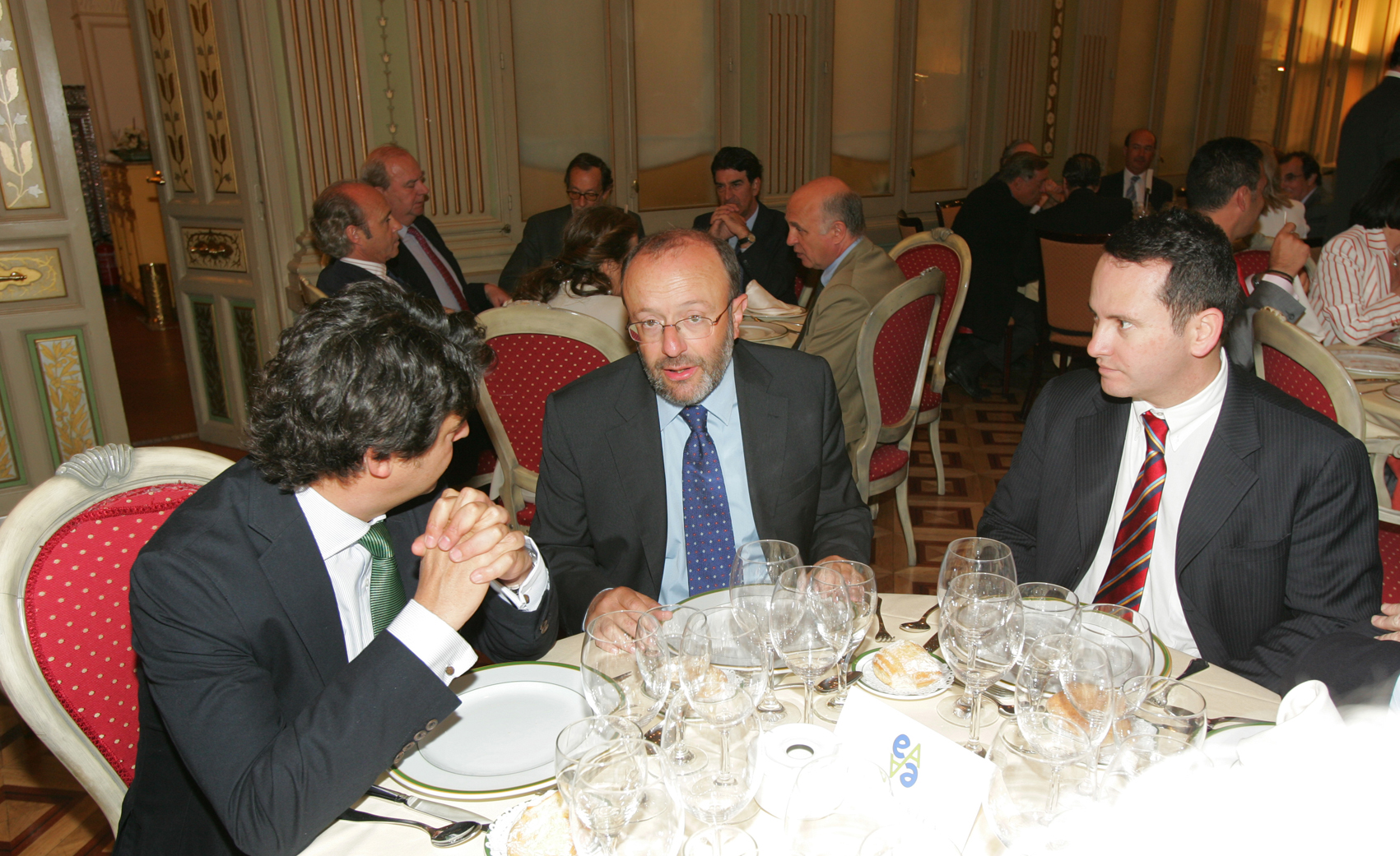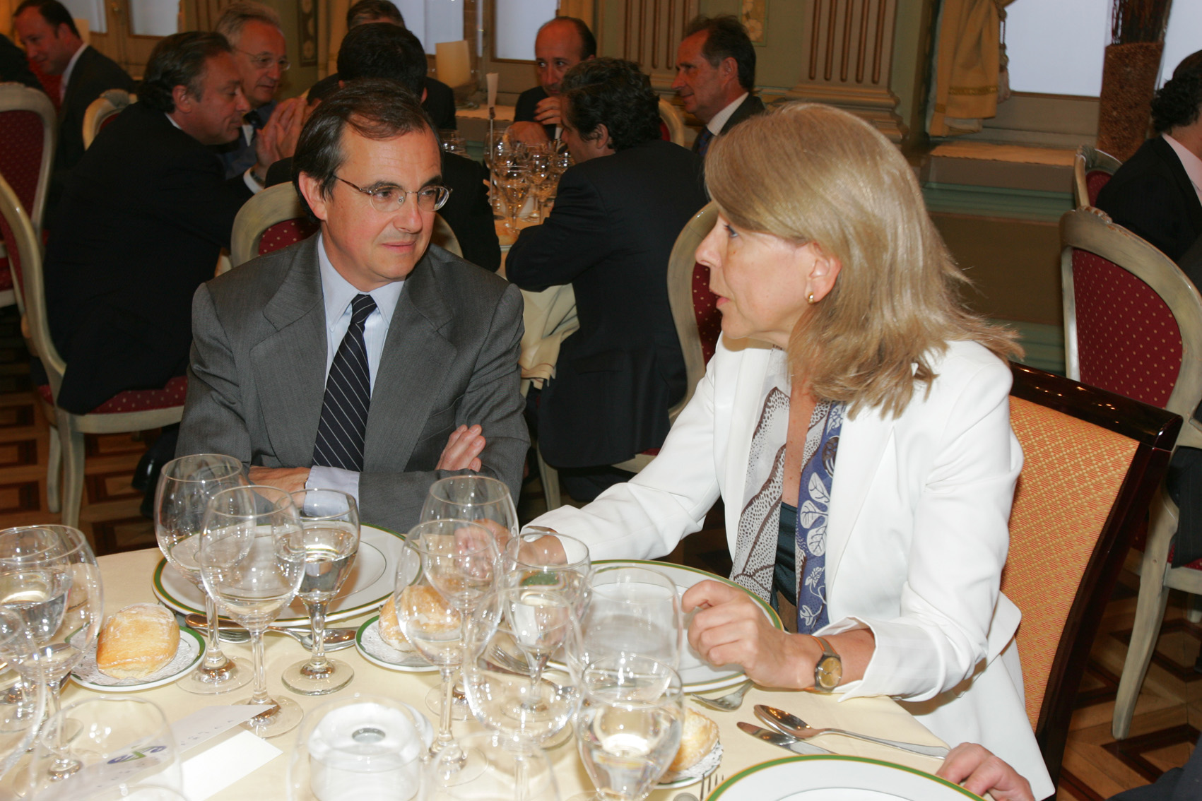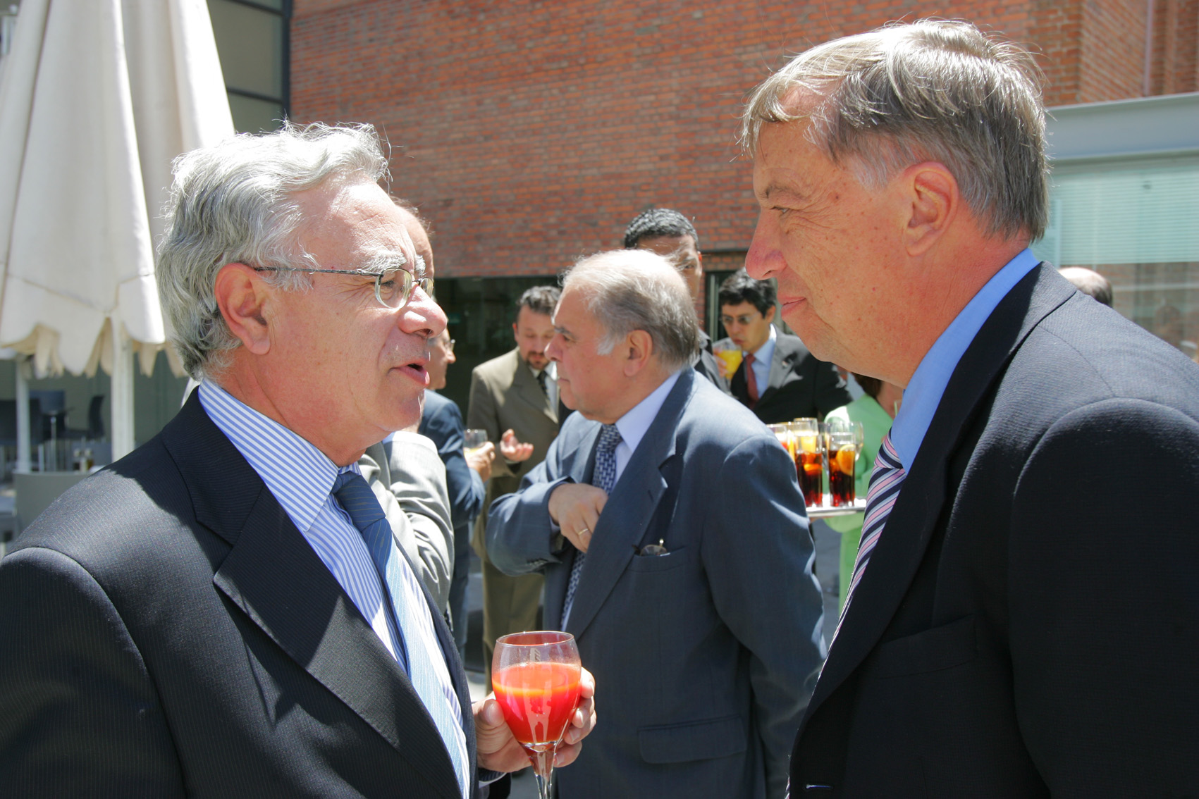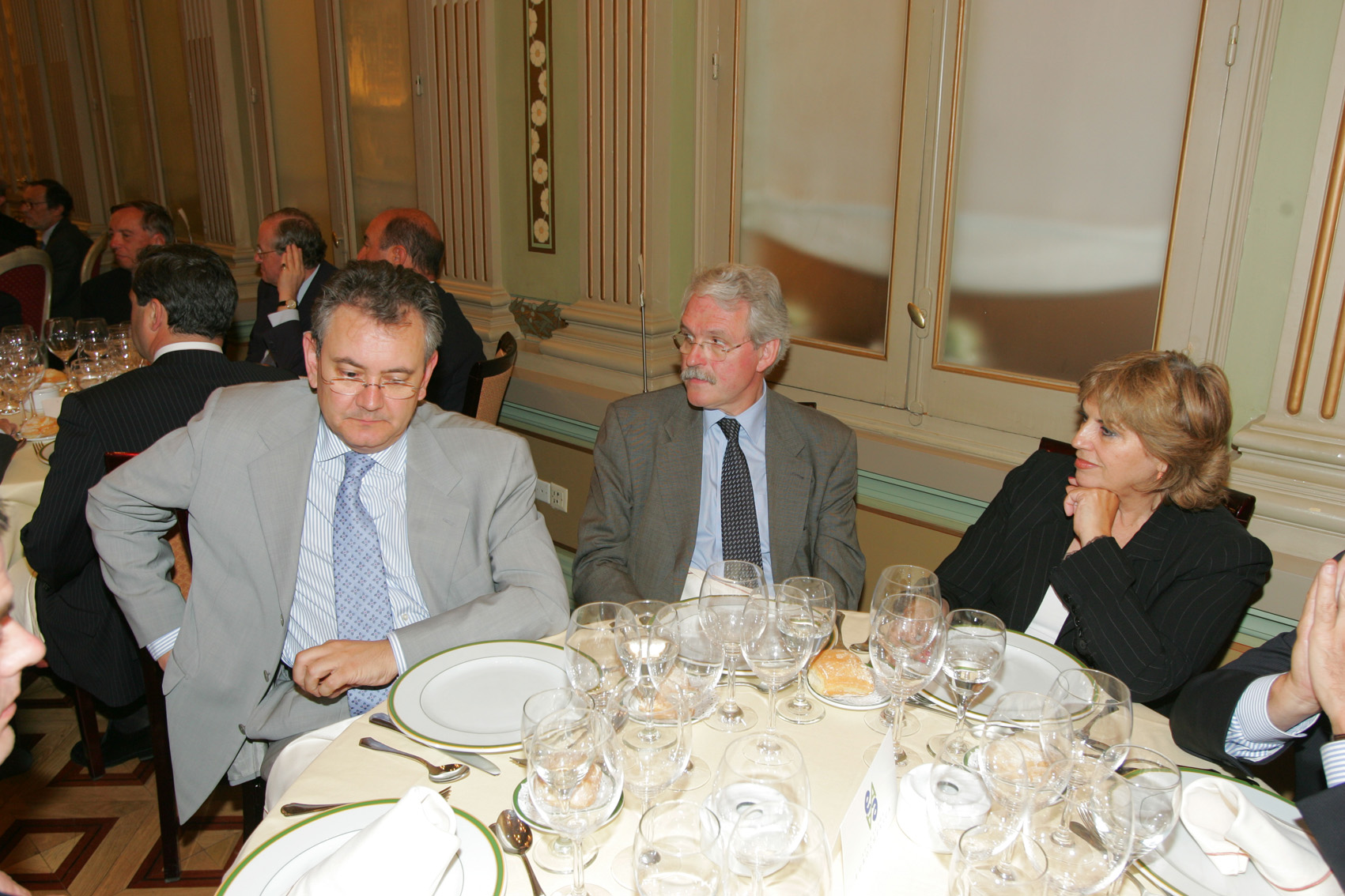 De Salamanca a Montevideo: el primer semestre de la Secretaría General Iberoamericana El Secretario General Iberoamericano, Enrique Iglesias, fue el invitado de honor del almuerzo-coloquio de mayo, lo que le permitió hacer balance de sus primeros meses al frente de la Secretaría General Iberoamericana, organismo de apoyo y seguimiento de las Cumbres Iberoamericanas, con sede en Madrid, cuyo objetivo es fomentar la cooperación, la presencia internacional y los valores culturales de la comunidad iberoamericana, bajo el impulso de los jefes de Estado. El antiguo presidente del BID (Banco Interamericano de Desarrollo) mostró su confianza en las enormes potencialidades de Latinoamérica, donde las instituciones democráticas se están fortaleciendo y los datos macroeconómicos están experimentando una clara mejoría. A pesar de estos progresos, persisten las enormes diferencias sociales, por lo que el prestigioso político uruguayo, nacido en Asturias, España, insistió en la necesidad de incrementar las inversiones en la región y en potenciar el canje de deuda por educación, tal como se decidió en la Cumbre Iberoamericana de Salamanca, celebrada en octubre de 2005. |