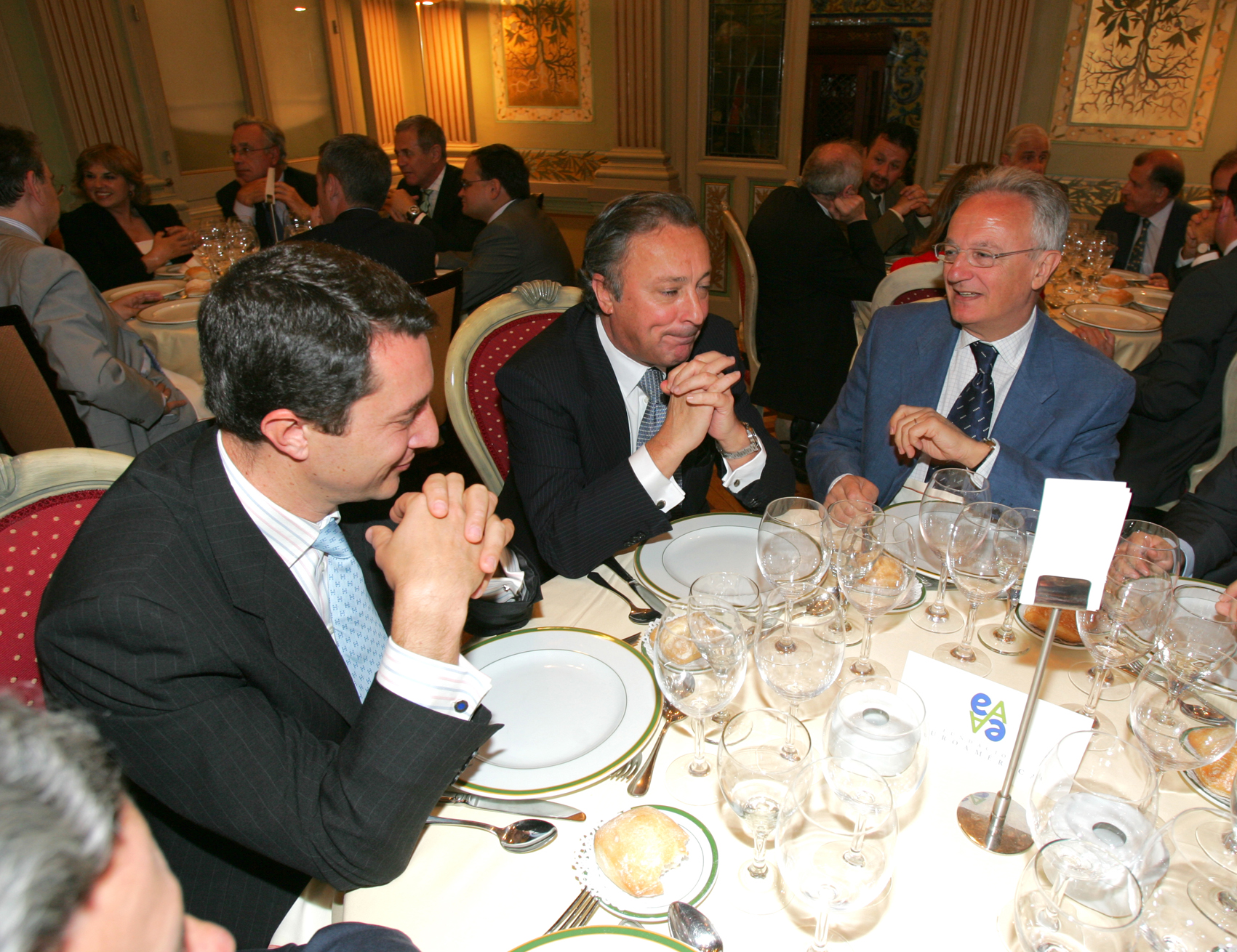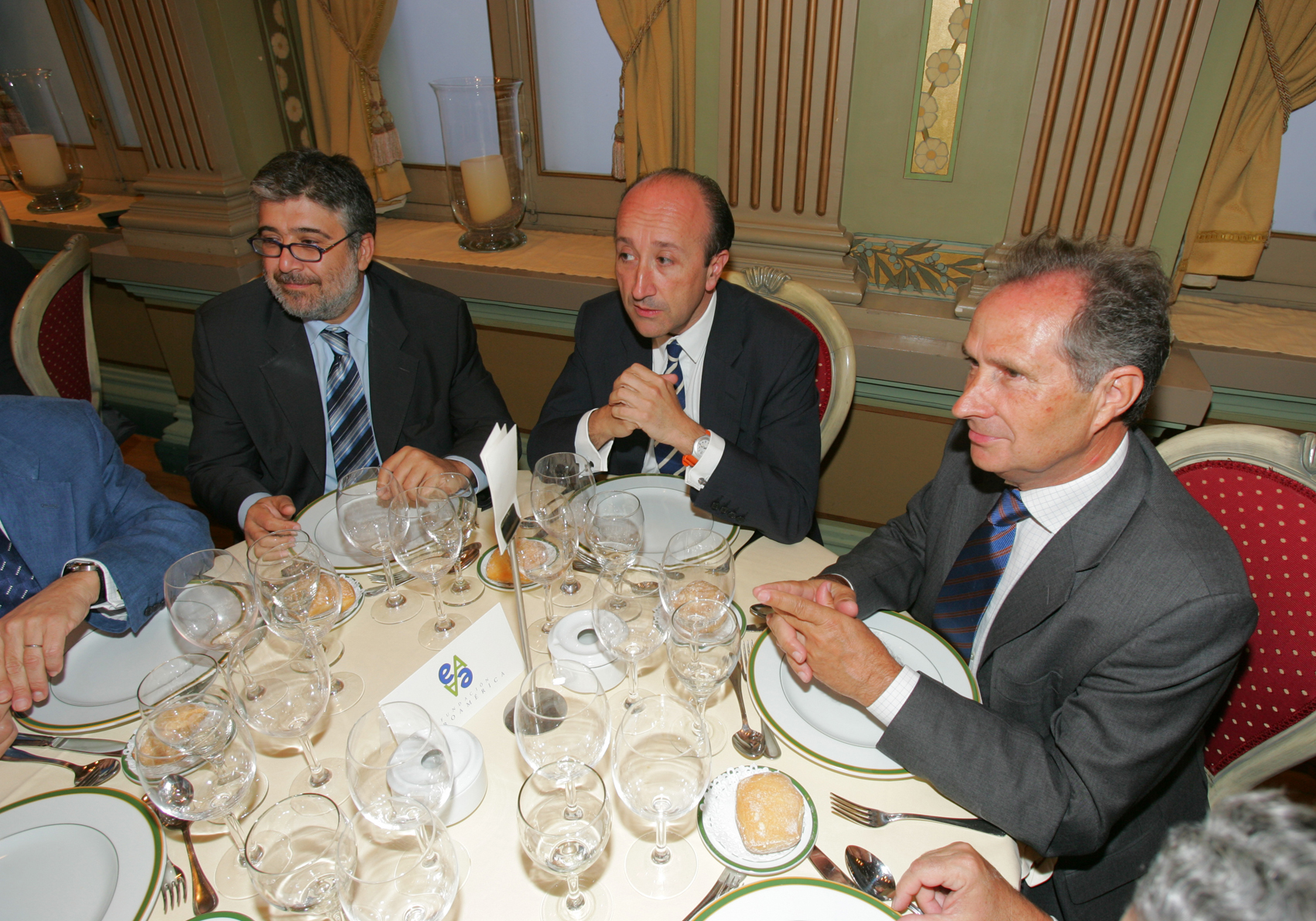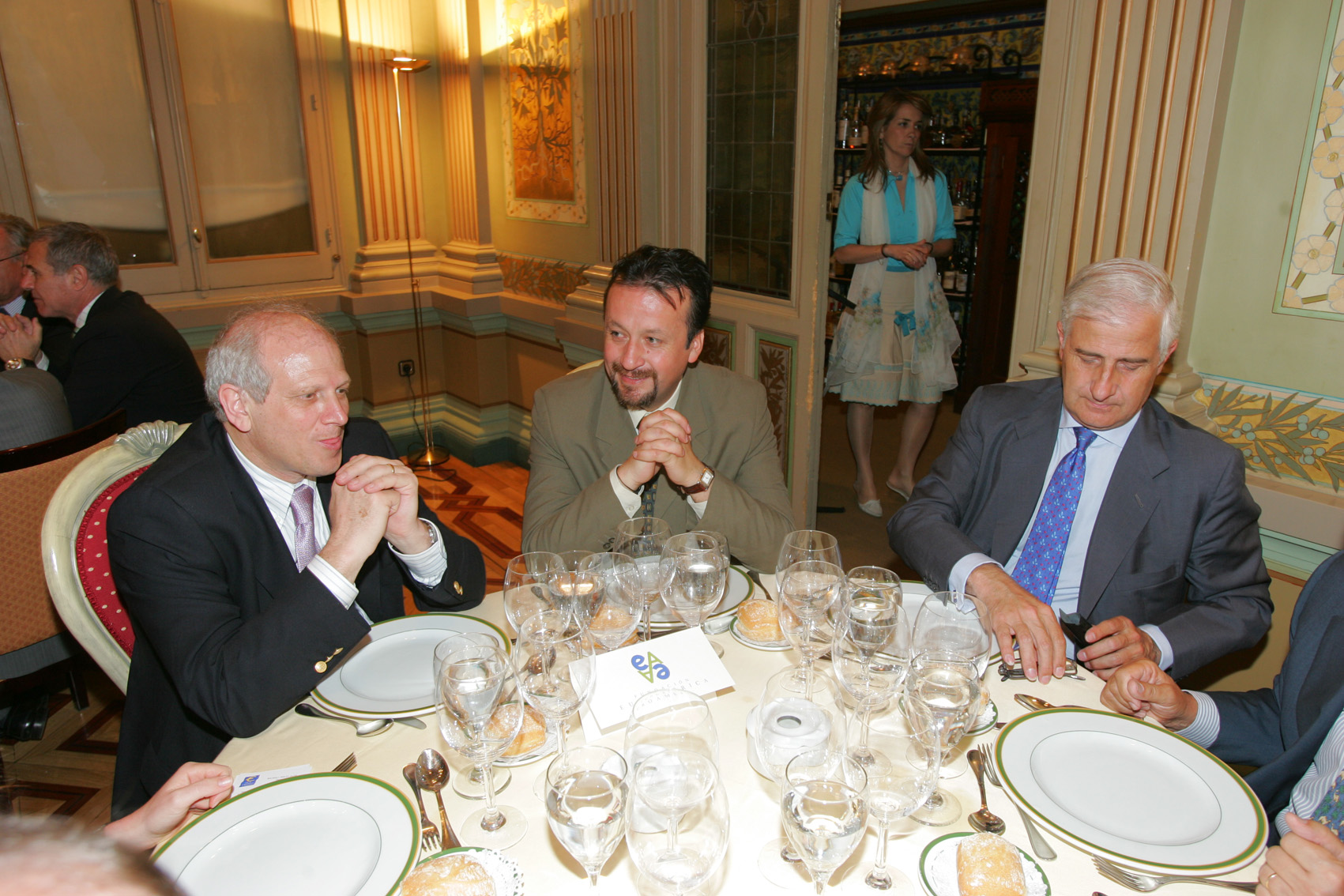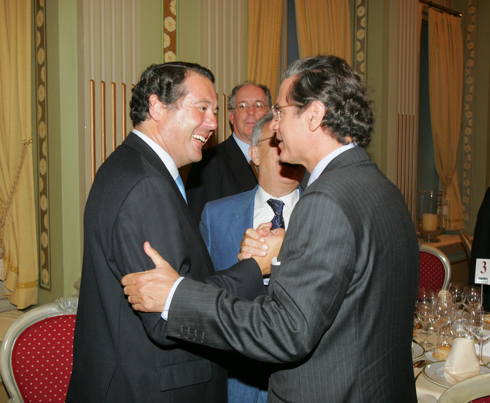 De Salamanca a Montevideo: el primer semestre de la Secretaría General Iberoamericana El Secretario General Iberoamericano, Enrique Iglesias, fue el invitado de honor del almuerzo-coloquio de mayo, lo que le permitió hacer balance de sus primeros meses al frente de la Secretaría General Iberoamericana, organismo de apoyo y seguimiento de las Cumbres Iberoamericanas, con sede en Madrid, cuyo objetivo es fomentar la cooperación, la presencia internacional y los valores culturales de la comunidad iberoamericana, bajo el impulso de los jefes de Estado. El antiguo presidente del BID (Banco Interamericano de Desarrollo) mostró su confianza en las enormes potencialidades de Latinoamérica, donde las instituciones democráticas se están fortaleciendo y los datos macroeconómicos están experimentando una clara mejoría. A pesar de estos progresos, persisten las enormes diferencias sociales, por lo que el prestigioso político uruguayo, nacido en Asturias, España, insistió en la necesidad de incrementar las inversiones en la región y en potenciar el canje de deuda por educación, tal como se decidió en la Cumbre Iberoamericana de Salamanca, celebrada en octubre de 2005. |
