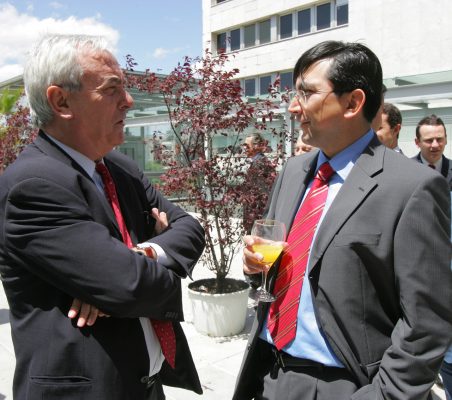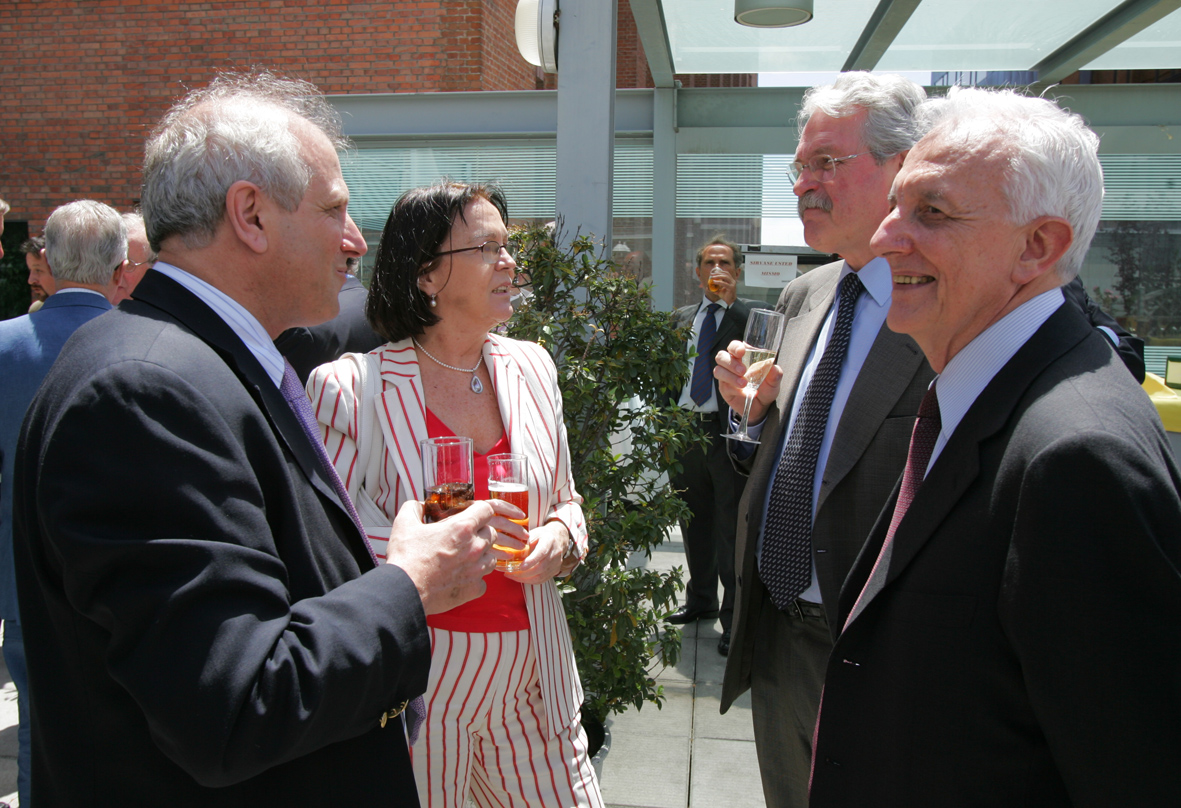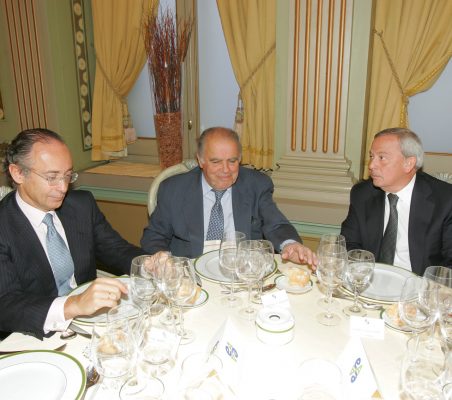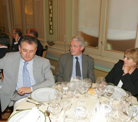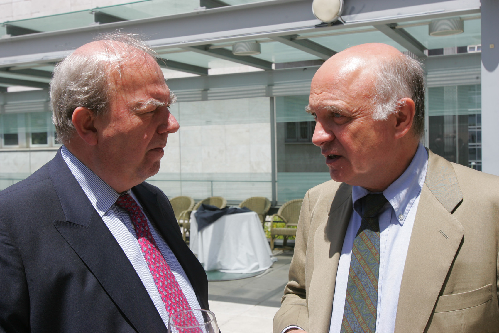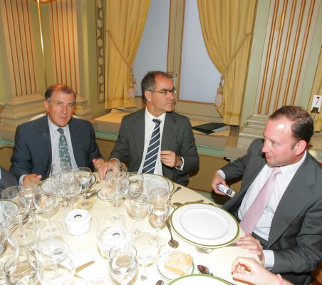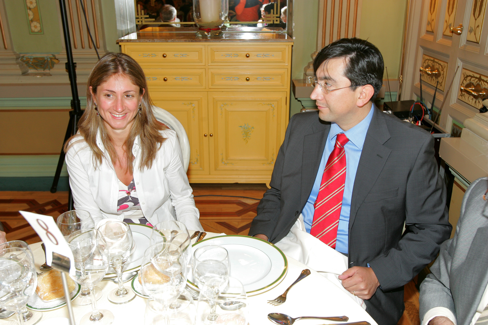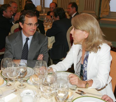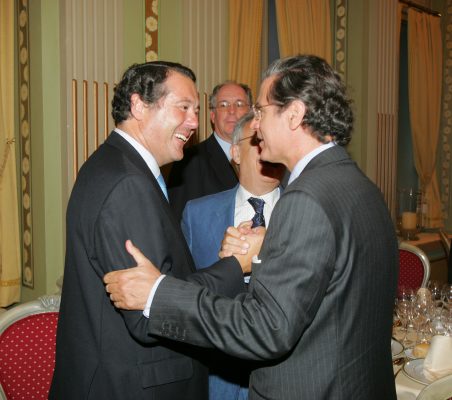 De Salamanca a Montevideo: el primer semestre de la Secretaría General Iberoamericana El Secretario General Iberoamericano, Enrique Iglesias, fue el invitado de honor del almuerzo-coloquio de mayo, lo que le permitió hacer balance de sus primeros meses al frente de la Secretaría General Iberoamericana, organismo de apoyo y seguimiento de las Cumbres Iberoamericanas, con sede en Madrid, cuyo objetivo es fomentar la cooperación, la presencia internacional y los valores culturales de la comunidad iberoamericana, bajo el impulso de los jefes de Estado. El antiguo presidente del BID (Banco Interamericano de Desarrollo) mostró su confianza en las enormes potencialidades de Latinoamérica, donde las instituciones democráticas se están fortaleciendo y los datos macroeconómicos están experimentando una clara mejoría. A pesar de estos progresos, persisten las enormes diferencias sociales, por lo que el prestigioso político uruguayo, nacido en Asturias, España, insistió en la necesidad de incrementar las inversiones en la región y en potenciar el canje de deuda por educación, tal como se decidió en la Cumbre Iberoamericana de Salamanca, celebrada en octubre de 2005. |