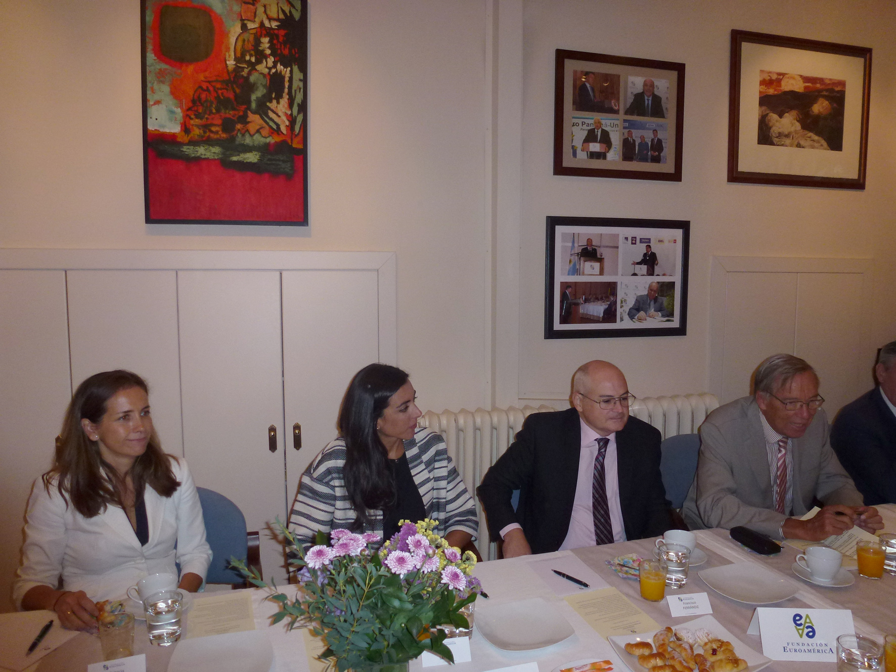 Tras su intervención y, como es costumbre, se entabló un coloquio con los asistentes al desayuno, quienes formularon a la invitada de honor un gran número de preguntas que tocaron diversos temas como la necesaria generalización de la tele asistencia y la telemedicina, la solvencia del sistema de seguridad social, los diferentes tipos de sistemas de S.S. existentes en la región, la movilidad empresarial iberoamericana, etc.