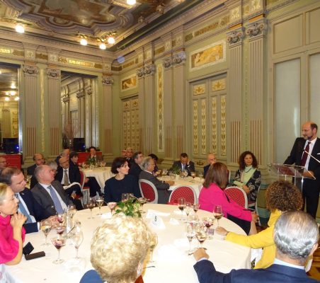 Durante su intervención, el invitado de honor destacó el valor económico y la gran importancia de las industrias culturales, así como el gran potencial del mercado iberoamericano en esta industria que es necesario potenciar y desarrollar, tanto desde el sector público como del privado. A continuación, y como es habitual en nuestros encuentros, se entabló un interesante coloquio con el público asistente.