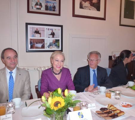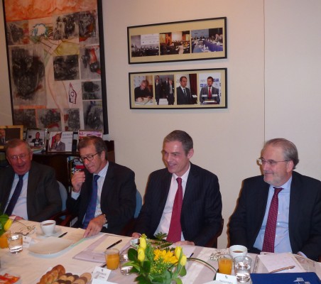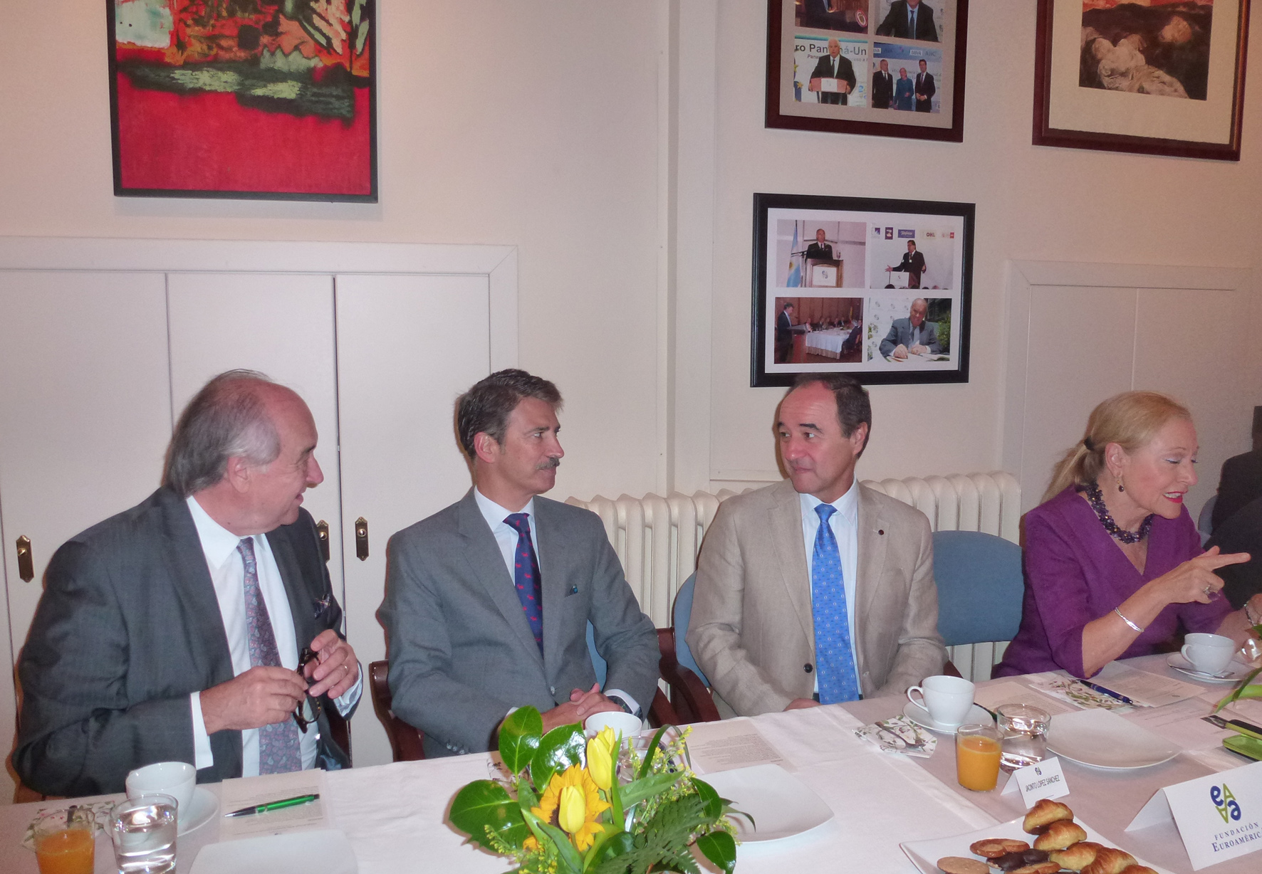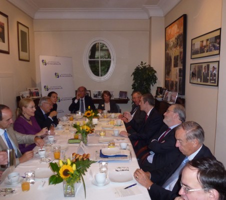 Alabó los logros alcanzados por la mayoría de los países latinoamericanos, tanto desde el punto de vista político como económico, con un crecimiento general y sostenido en el tiempo. Hizo mención especial a la política del Presidente Lula en Brasil, quien fue capaz de dar un impulso fuerte al crecimiento económico, garantizando una distribución más equitativa entre la población. En cuanto a su país, comentó la influencia francesa en el continente que es, en especial, a nivel intelectual. Esta influencia, desarrollada en los S. XIX y XX ha tenido como resultado el hecho de que en América Latina existe la red de la Alianza Francesa más grande del mundo o que los latinoamericanos sean el grupo de estudiantes más importante en Francia, tras los marroquíes y los chinos. En su disertación habló del papel que tiene que jugar Europa, tanto en América Latina como en el mundo en general. “La globalización es un hecho”. En este sentido afirmó que la importancia de un país “se mide por su capacidad de proyección internacional” y abogó por la cooperación empresarial dentro de Europa, para ser más competitivos fuera del continente, destacando igualmente lo positivo de la “rivalidad amistosa“entre empresas francesas y españolas en sus inversiones en Latinoamérica, como también ocurre con otras alemanas o de otras nacionalidades europeas. Concluyó diciendo que América Latina va a continuar su desarrollo durante este siglo y el reto es saber si va a ser Estados Unidos, Asia o Europa quien tenga una posición de privilegio en sus relaciones con la región. Para que sea Europa su socio privilegiado, tendrá que construir una oferta atractiva y para ello el papel de España es fundamental. Tras su intervención, los asistentes al desayuno le felicitaron por los dos franceses galardonados con los premios Nobel de Literatura y Economía, para pasar a un interesante coloquio donde se tocaron diferentes temáticas como la renovación de los acuerdos de Asociación que existen entre la Unión Europea y Latinoamérica, el TTIP con Estados Unidos, la importancia de la influencia cultural que podría ejercer Europa en el resto del mundo, las diferentes posturas en Europa con respecto al crecimiento, la importancia de un sistema educativo más adaptado a las necesidades empresariales, que nos haga más competitivos, entre otros. |