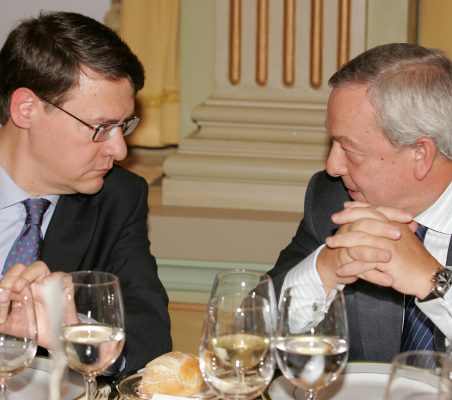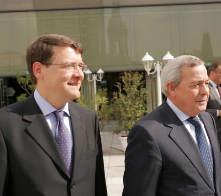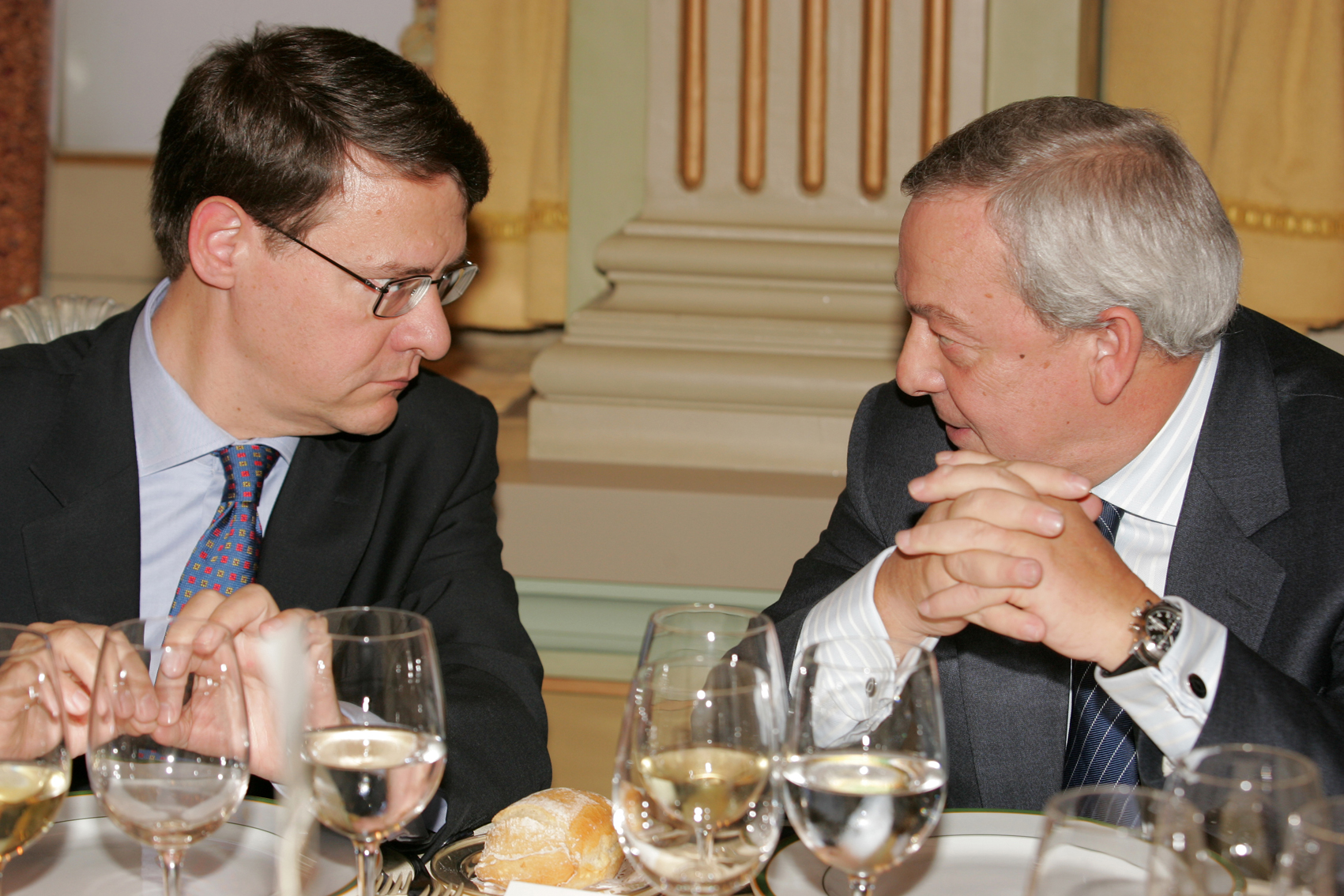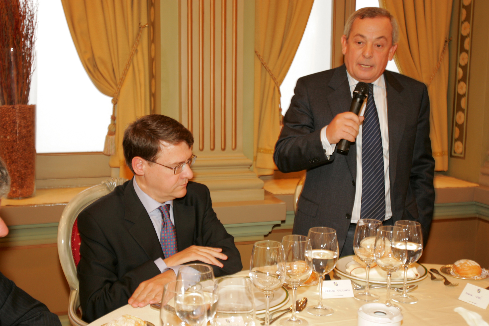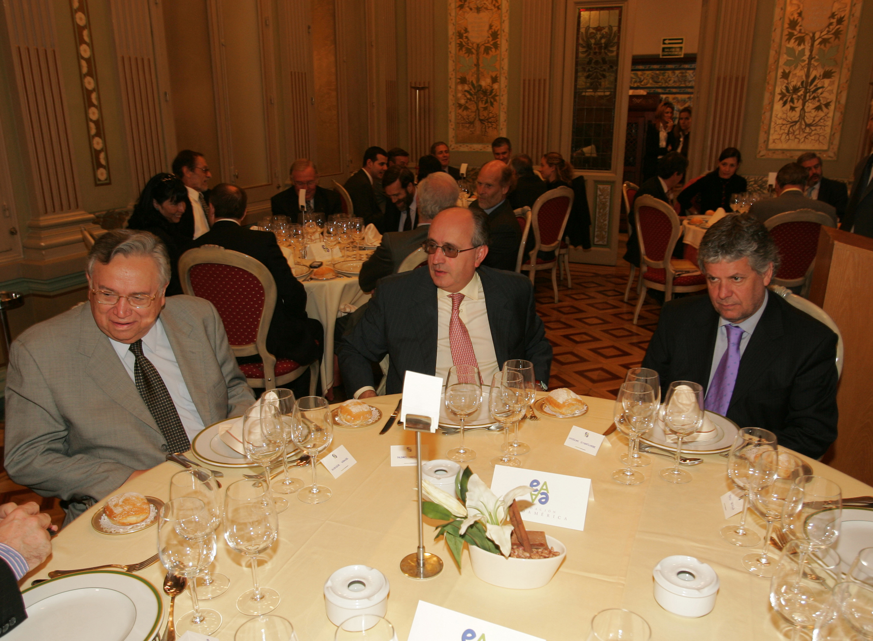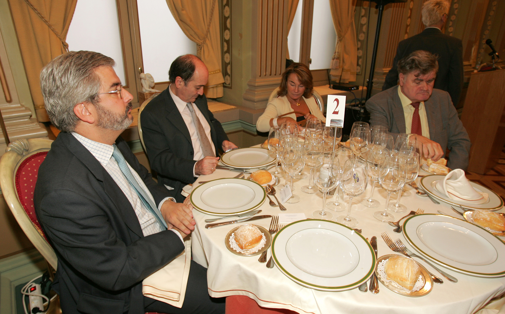 | Jordi Sevilla, aceptó por segunda vez, en noviembre del año pasado, la invitación al almuerzo-coloquio de la Fundación Euroamérica en calidad de ministro de Administraciones Públicas del Gobierno español. Anteriormente había participado como secretario de Política Económica y Ocupación del Partido Socialista Obrero Español. En esta ocasión, el ministro Sevilla explicó el proceso de reformas de los Estatutos de Autonomía, previsto en la Constitución, que se ha iniciado en España tras la llegada al poder del PSOE en abril de 2004. Jordi Sevilla se centró principalmente en el proyecto de reforma del Estatuto de Cataluña emanado del parlamento autonómico, y que había sido admitido a trámite en fechas recientes por el Congreso de los Diputados. |