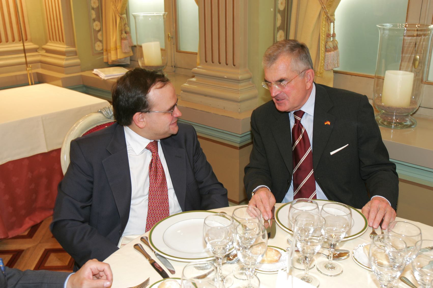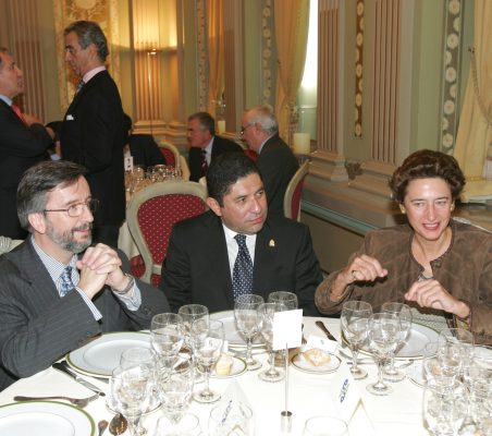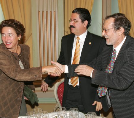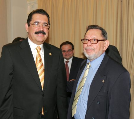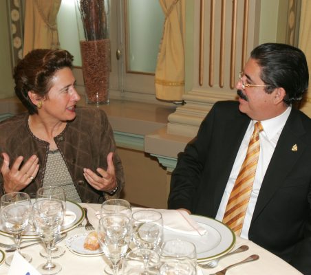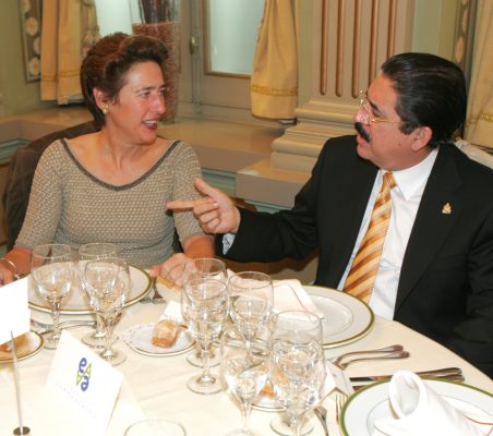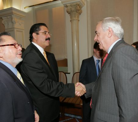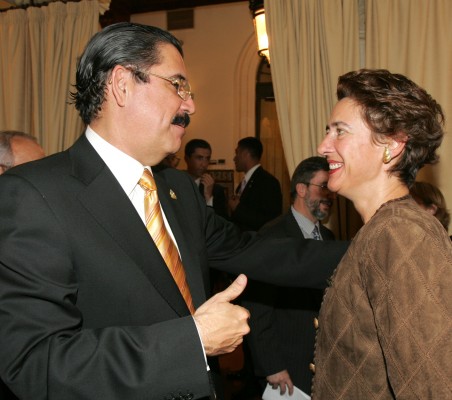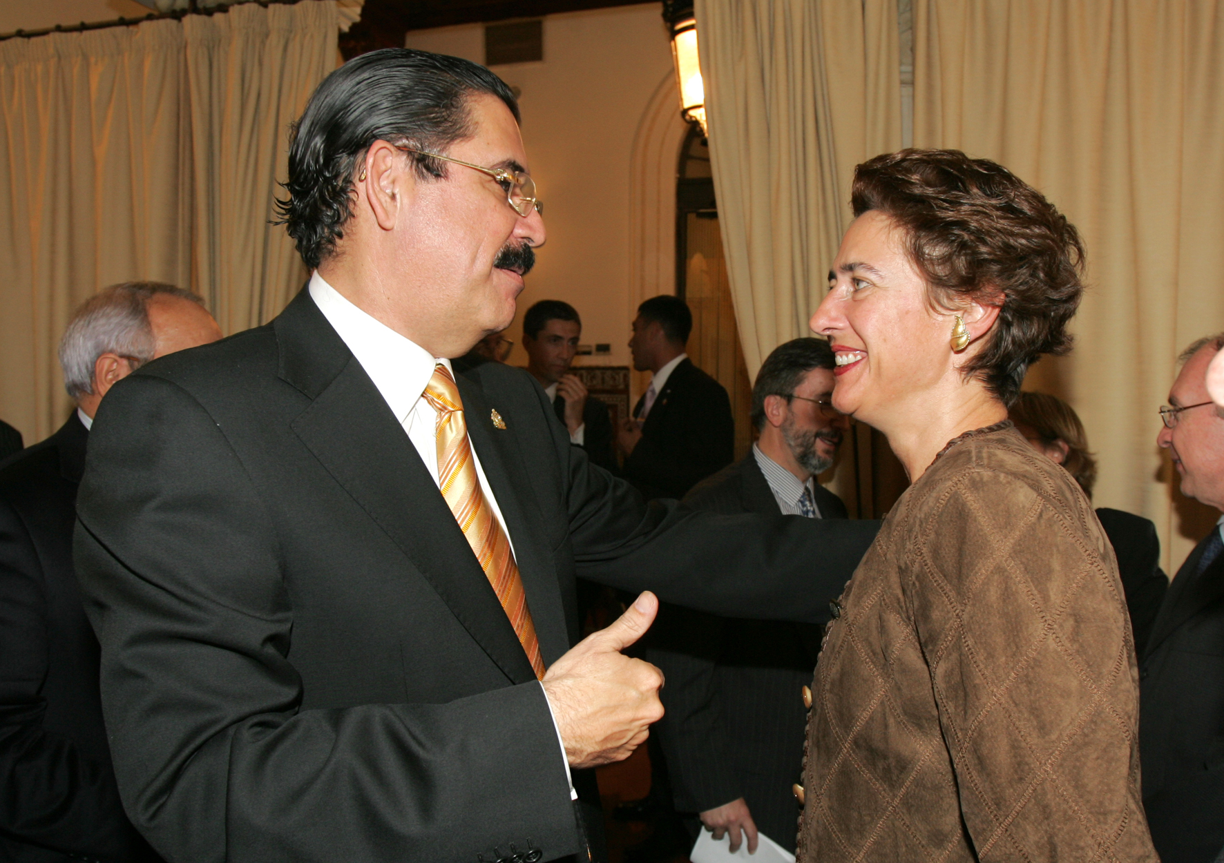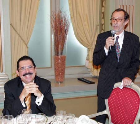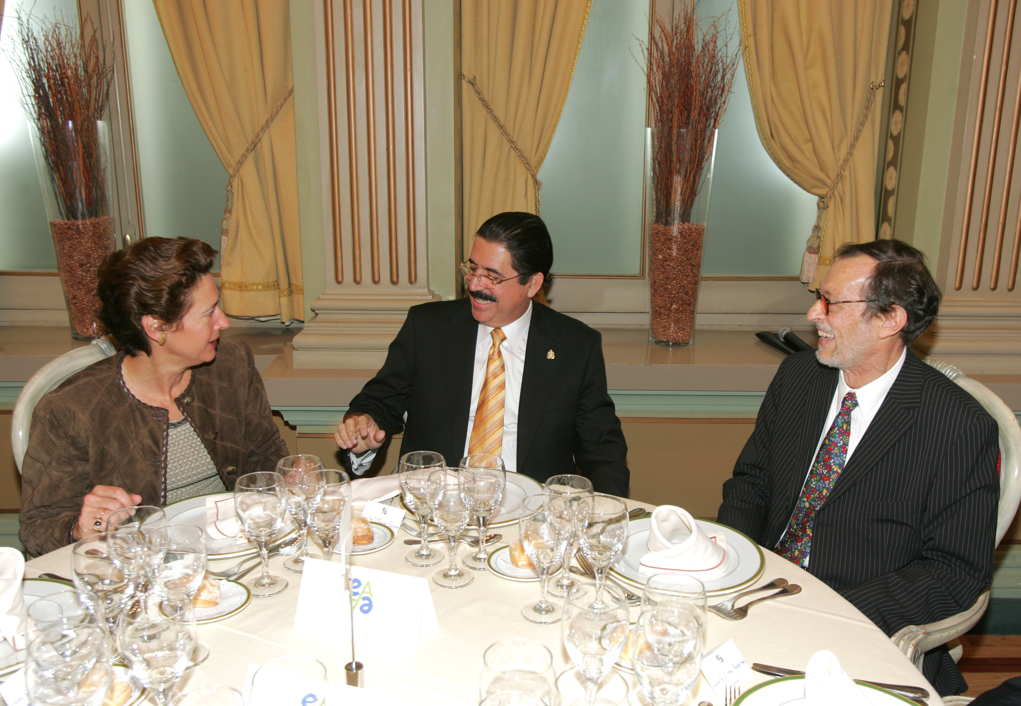 | Nuevas oportunidades de inversión y desarrollo en Honduras Dentro de su visita oficial a España, invitado por Sus Majestades los Reyes en diciembre de 2006, el Presidente de Honduras,Manuel Zelaya, incluyó en su programa una cena-coloquio con la Fundación Euroamérica a la que asistieron unas cuarenta personalidades de la diplomacia, las instituciones y las empresas. El presidente Zelaya, del Partido Liberal, que asumió sus funciones en enero de 2006, presentó las líneas de actuación de su gobierno, basadas fundamentalmente en la transparencia, la seguridad jurídica y la lucha contra la pobreza, lo que puede estimular las posibilidades de inversión extranjera en el país centroamericano. Acompañaron al presidente hondureño los ministros de Relaciones Exteriores, Milton Jiménez; del despacho presidencial, Yani Rosenthal y su secretario privado, Raúl Valladares. |