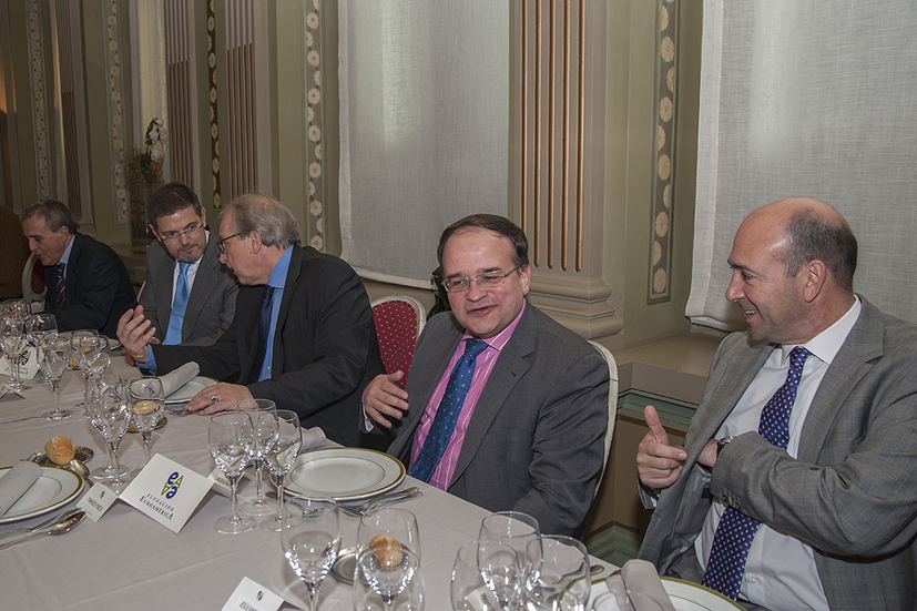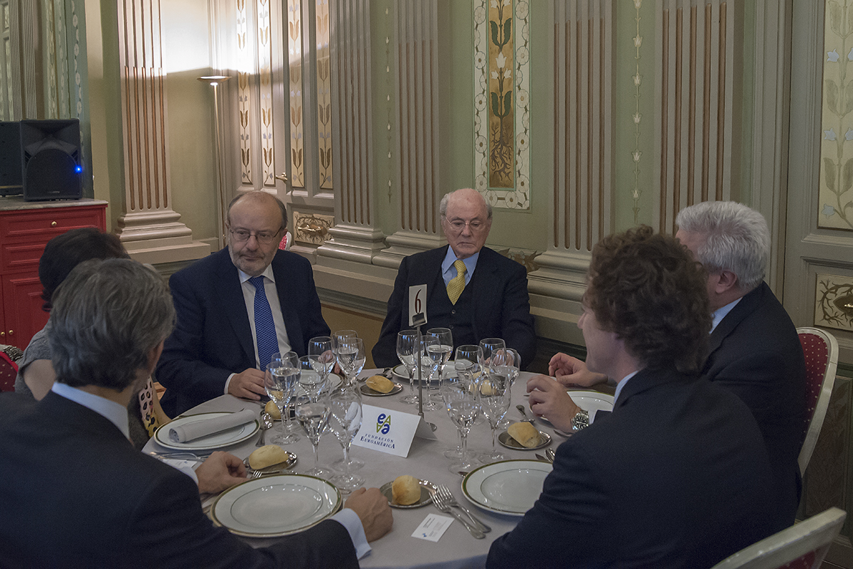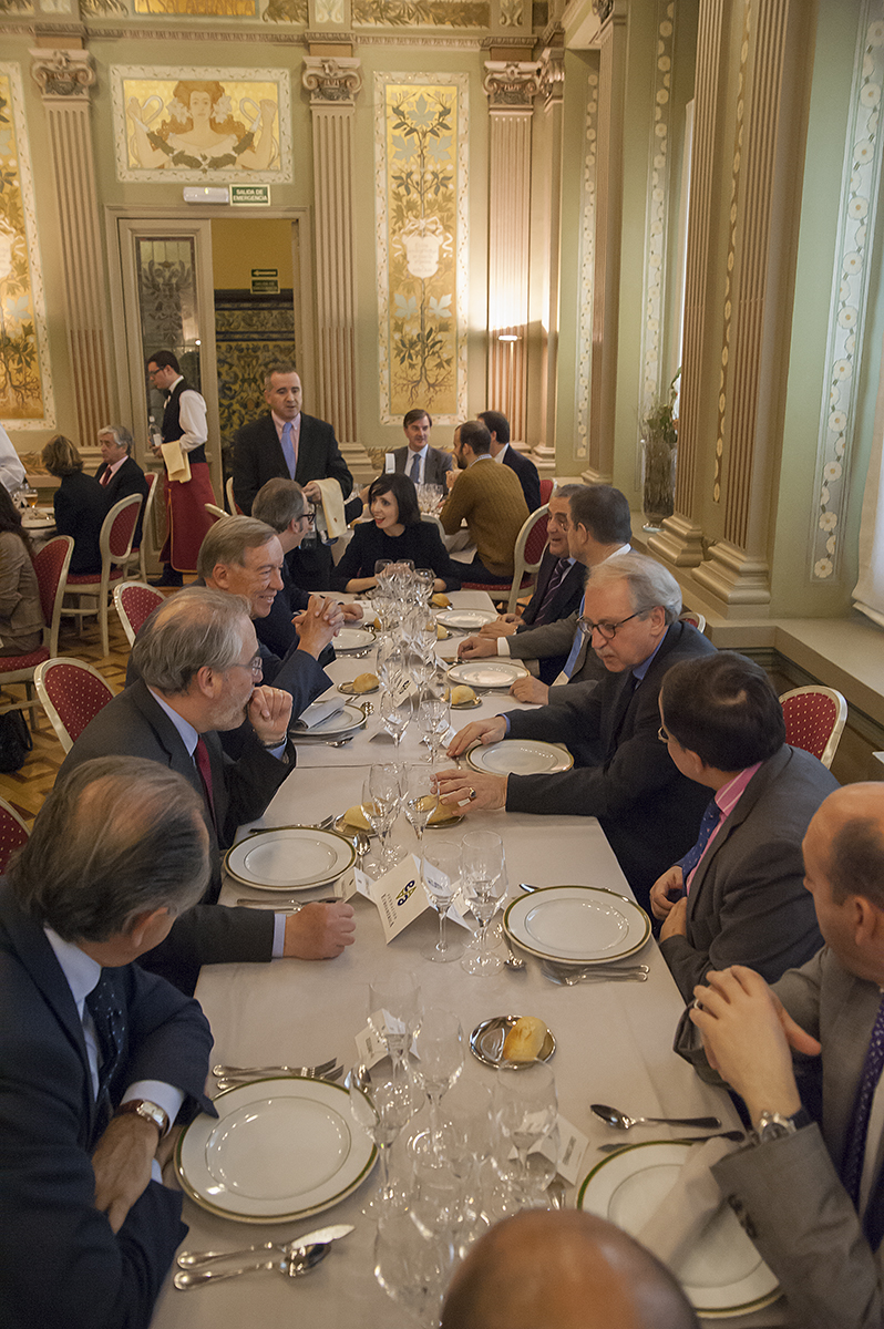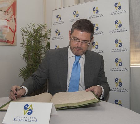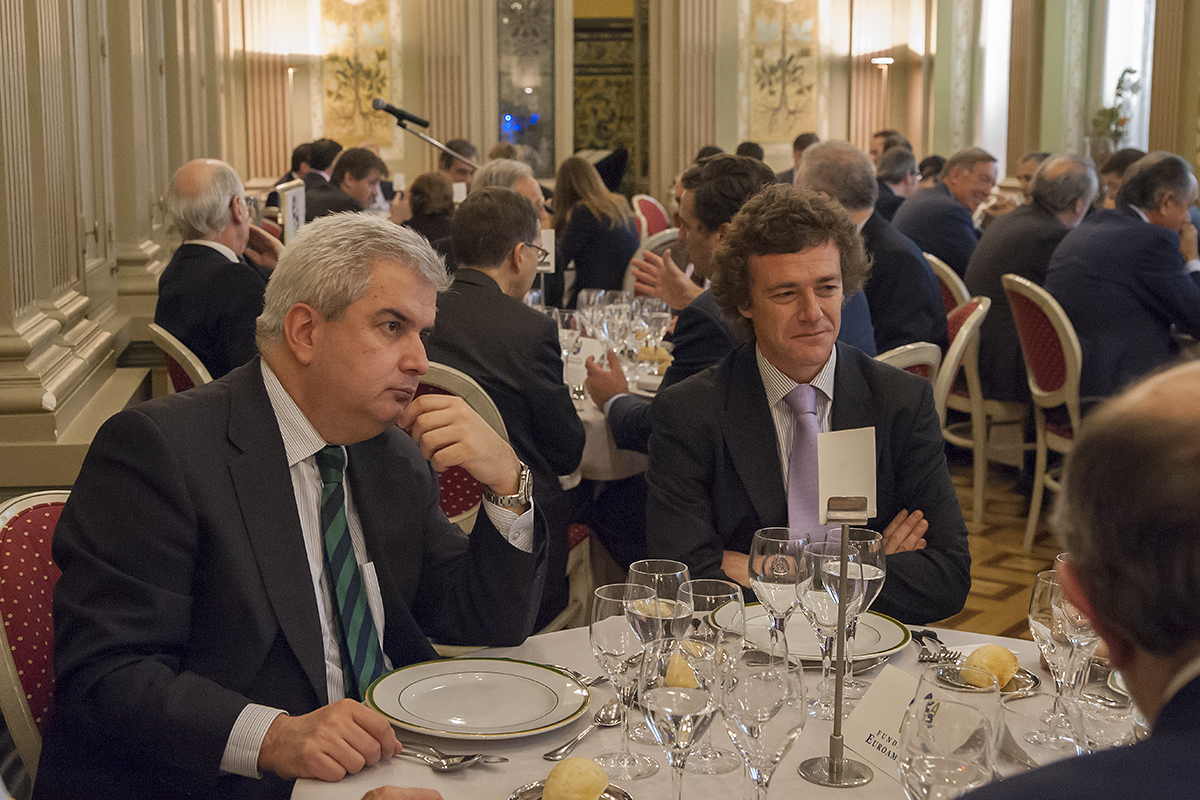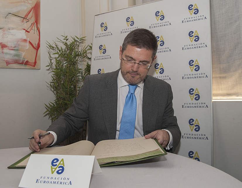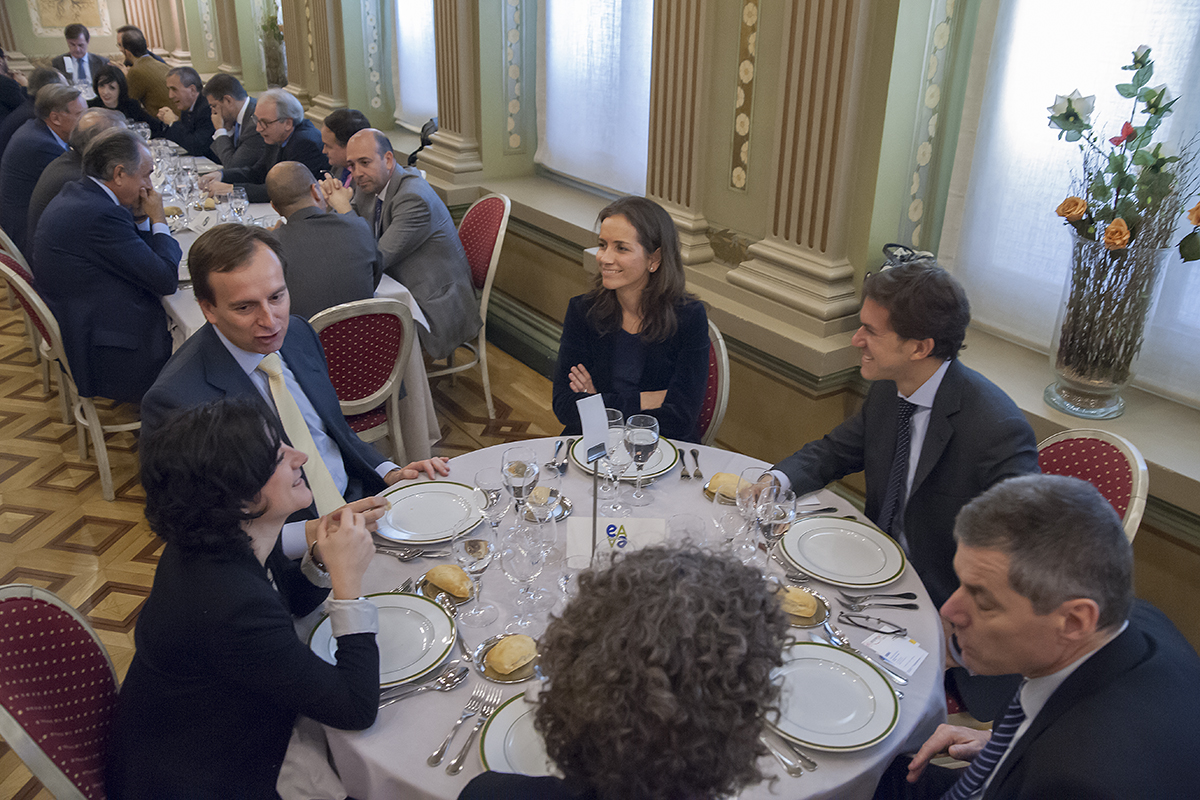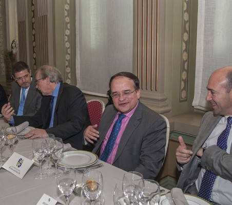El almuerzo-coloquio, organizado por la Fundación Euroamérica y patrocinado de Innaxis, tuvo como invitado de honor a Matthias Ruete, Director General de Movilidad y Transportes de la Comisión Europea. Contó, además, con la asistencia del Secretario de Estado de Infraestructuras, Transporte y Vivienda del Gobierno español, Rafael Catalá. Se abordaron temas sobre la Unión Europea, en especial, los proyectos sobre transportes que están en marcha dentro del marco de la futura Europa que, por supuesto, incumben al Estado español. Al finalizar la exposición, se generó un interesante coloquio, con preguntas y reflexiones sobre el tema tratado. |