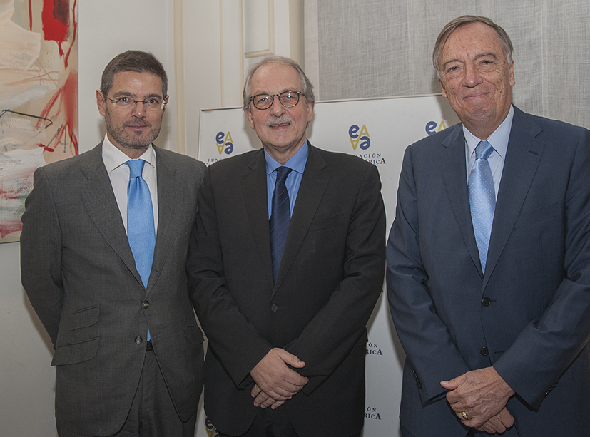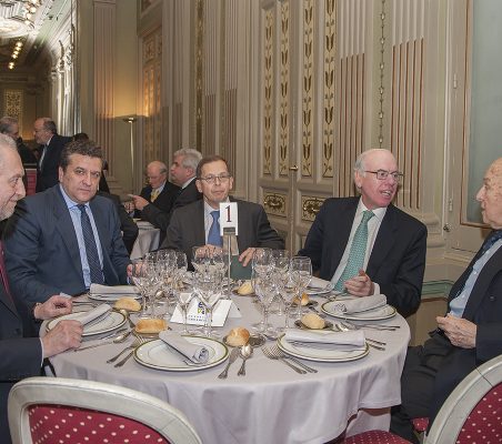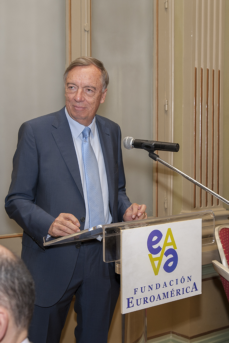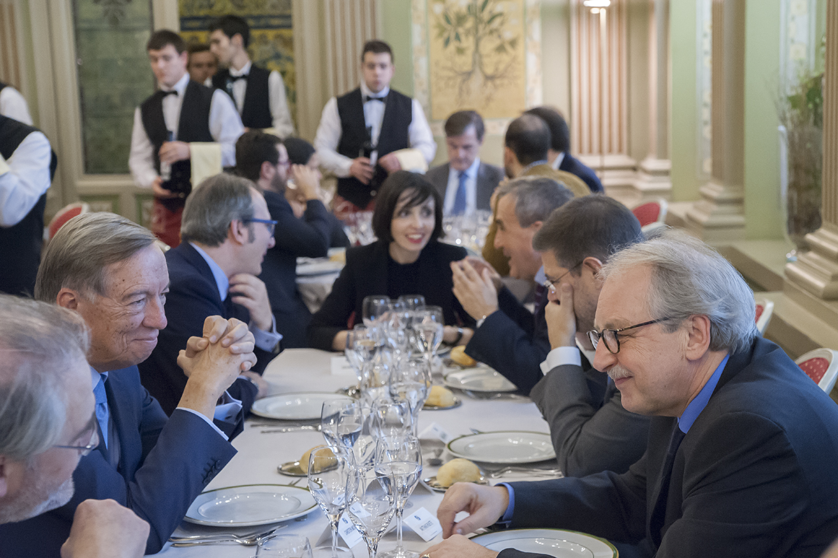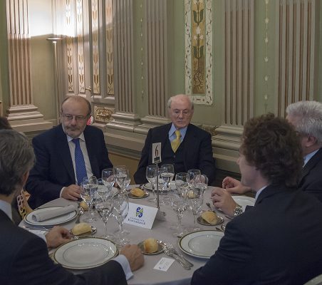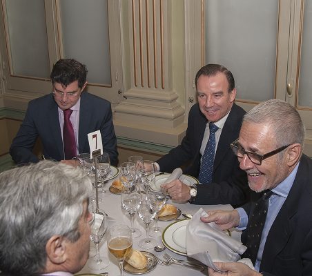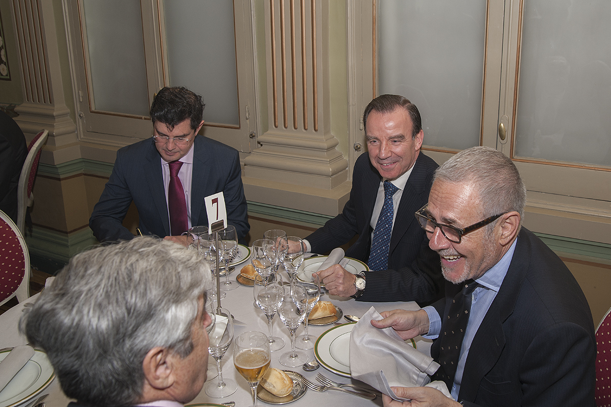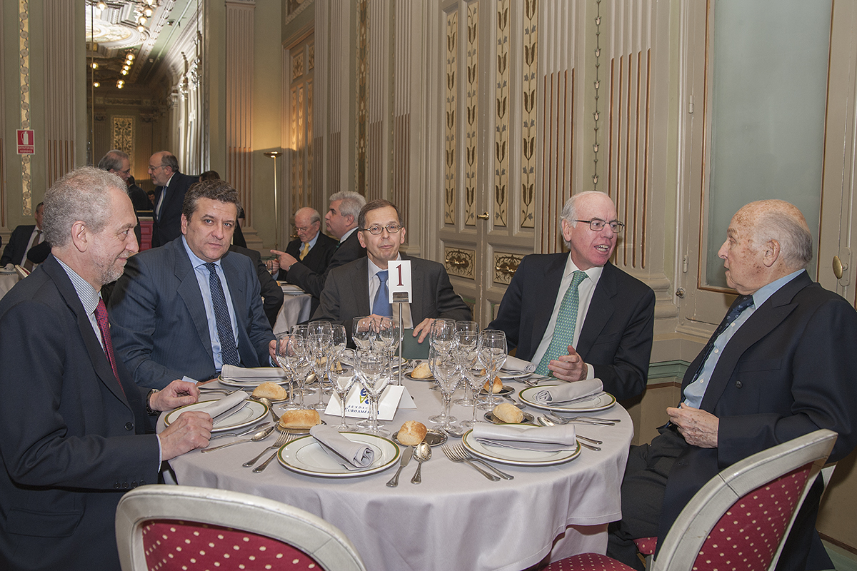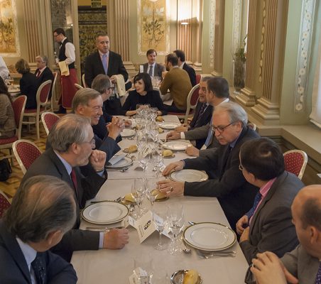 El almuerzo-coloquio, organizado por la Fundación Euroamérica y patrocinado de Innaxis, tuvo como invitado de honor a Matthias Ruete, Director General de Movilidad y Transportes de la Comisión Europea. Contó, además, con la asistencia del Secretario de Estado de Infraestructuras, Transporte y Vivienda del Gobierno español, Rafael Catalá. Se abordaron temas sobre la Unión Europea, en especial, los proyectos sobre transportes que están en marcha dentro del marco de la futura Europa que, por supuesto, incumben al Estado español. Al finalizar la exposición, se generó un interesante coloquio, con preguntas y reflexiones sobre el tema tratado. |