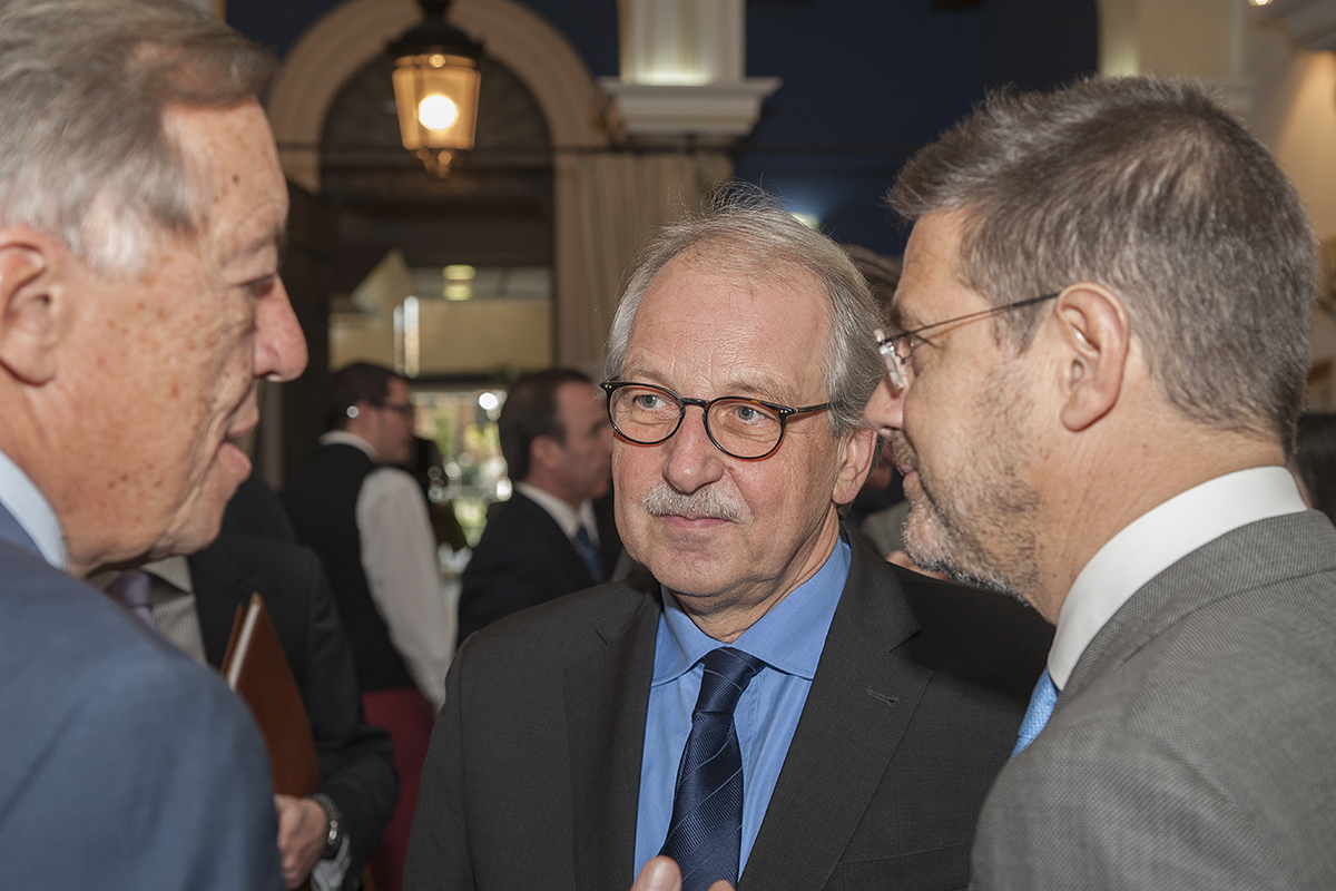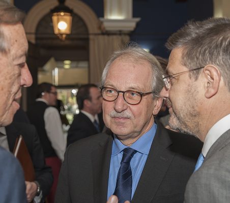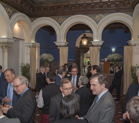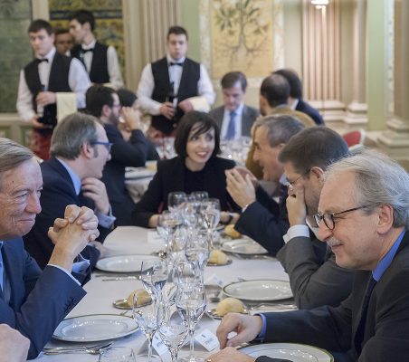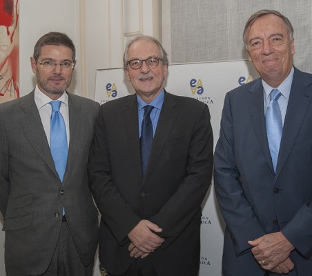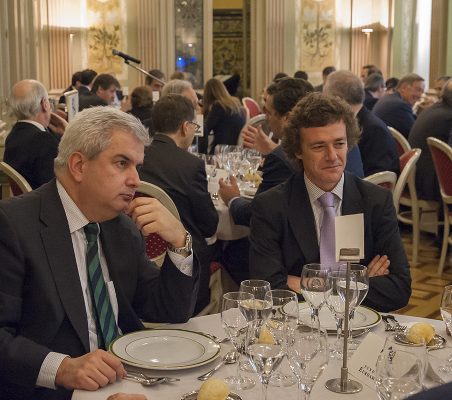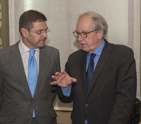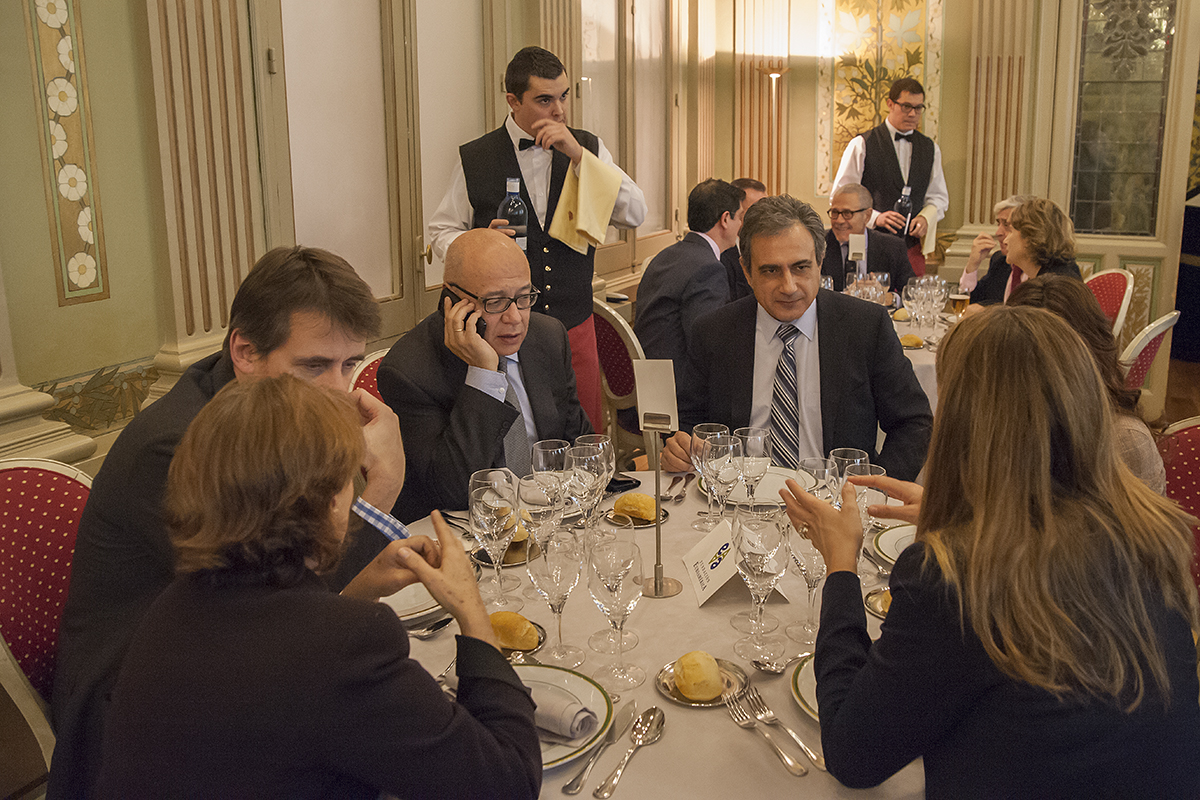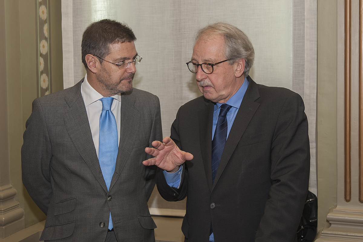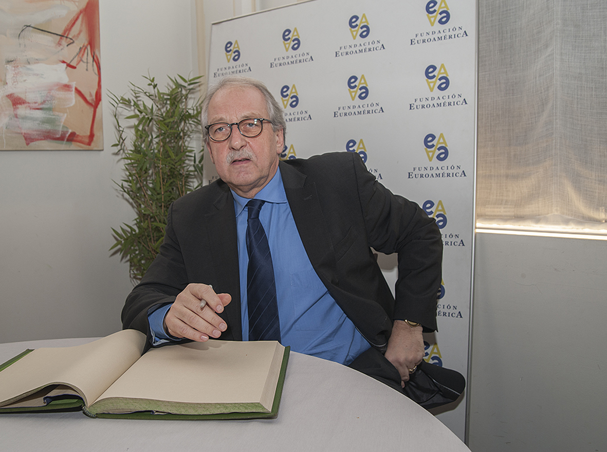 El almuerzo-coloquio, organizado por la Fundación Euroamérica y patrocinado de Innaxis, tuvo como invitado de honor a Matthias Ruete, Director General de Movilidad y Transportes de la Comisión Europea. Contó, además, con la asistencia del Secretario de Estado de Infraestructuras, Transporte y Vivienda del Gobierno español, Rafael Catalá. Se abordaron temas sobre la Unión Europea, en especial, los proyectos sobre transportes que están en marcha dentro del marco de la futura Europa que, por supuesto, incumben al Estado español. Al finalizar la exposición, se generó un interesante coloquio, con preguntas y reflexiones sobre el tema tratado. |