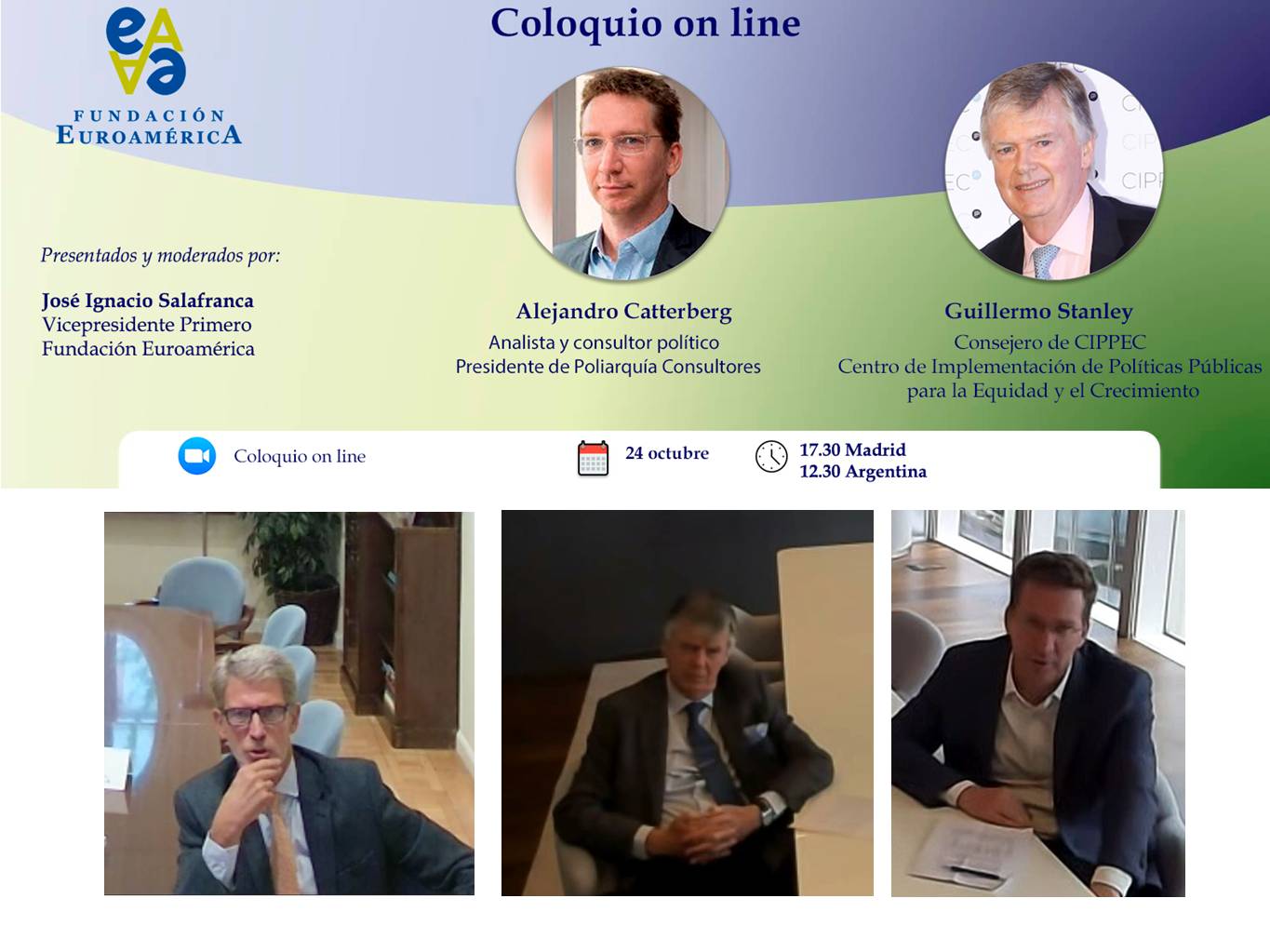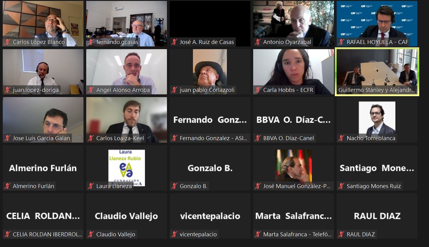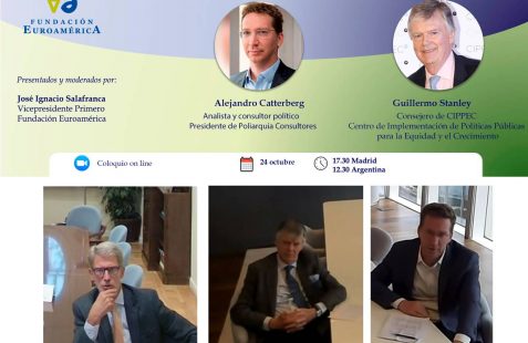 El peronista Sergio Massa ganó el pasado domingo 22 de octubre la primera vuelta de de las elecciones argentinas con el 36,7% de los votos y disputará la presidencia en la segunda vuelta, el 19 de noviembre, con Javier Milei, que consiguió el 30%. La conservadora Patricia Bullrich obtuvo únicamente el 23.8% de los votos en unos comicios en los que participó el 74% del padrón. En el coloquio online celebrado por la Fundación, con los expertos Guillermo Stanley y Alejandro Catterberg , se analizaron las posibles causas que han motivado este resultado que no era el esperado por las encuestas, así como los posibles escenarios de cara a la votación del día 19. Con posterioridad a sus intervenciones tuvo lugar un interesante coloquio con los asistentes entre los que se encontraba Francisco de Santibañes, presidente de CARI, Fernando García Casas, Cónsul General de España en Buenos Aires, entre otros.