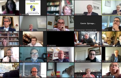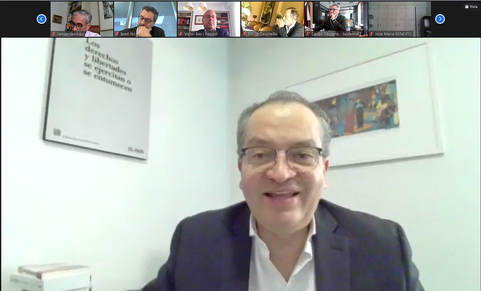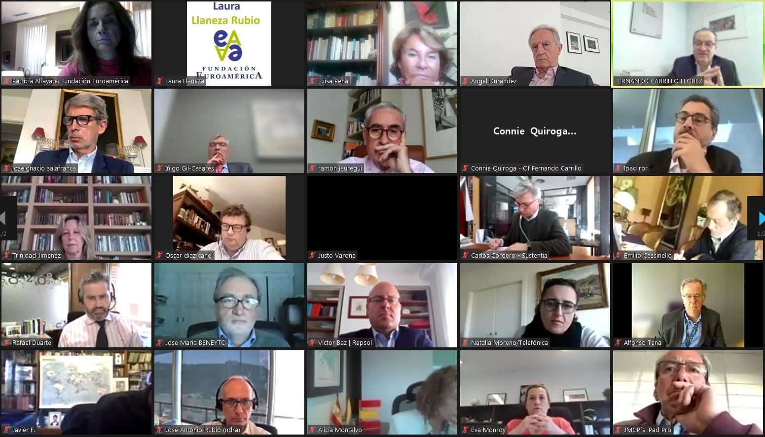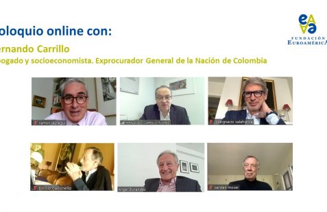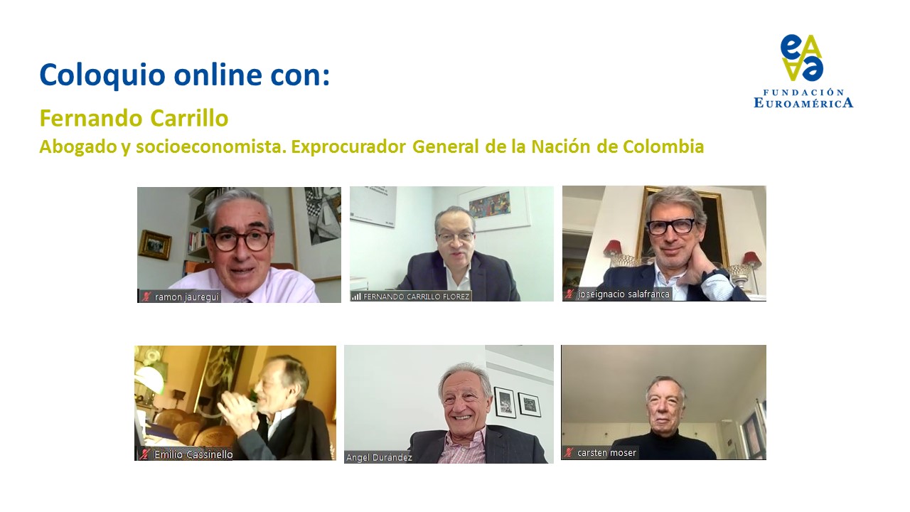 El vicepresidente de la Fundación, José Ignacio Salafranca presentó al invitado, Fernando Carrillo, quien habló de la situación política en Colombia después de las elecciones legislativas de marzo y de cara a las elecciones presidenciales, un escenario en el que según las encuestas, ninguno de los candidatos ganaría en la primera vuelta (el 29 de mayo).