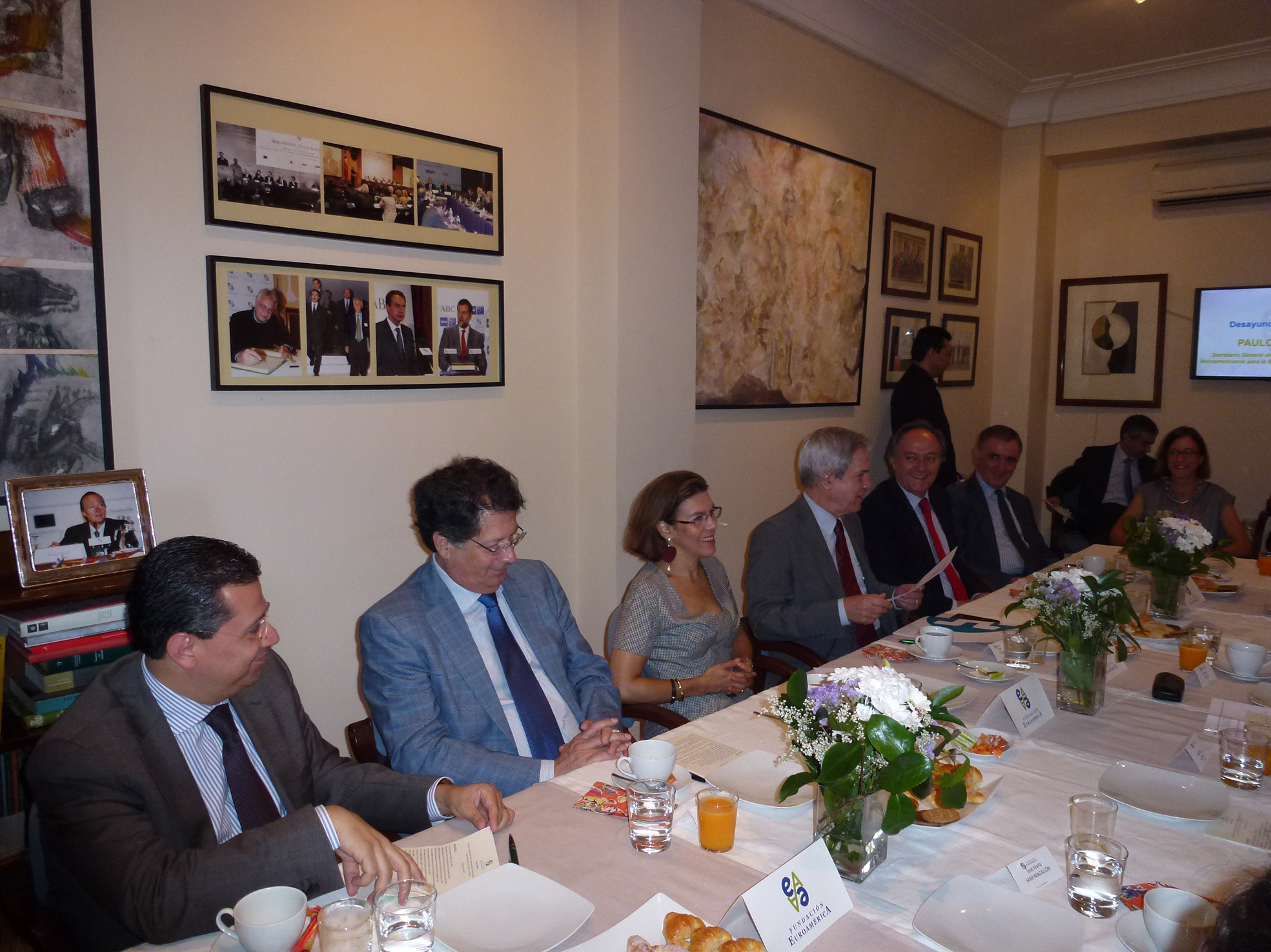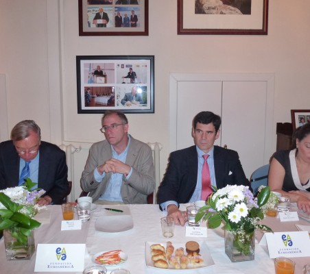 Comenzó su intervención con una explicación de los orígenes y evolución de la OEI, que creada hace 66 años, cuenta en la actualidad con 22 países miembros y 7 países observadores que podrán ampliarse en breve ya que han solicitado adherirse Macao y Puerto Rico. Su objetivo principal es promover la universalidad de la educación y su calidad, esto es, buscar una inclusión no solo cuantitativa sino también la calidad en cuanto a su financiación, la OEI se financia a través de las cuotas de sus miembros así como de fundaciones e instituciones privadas. A partir de la I Conferencia Iberoamericana celebrada en Guadalajara en 1991, la OEI ha promovido y convocado las Conferencias de Ministros de Educación, como preparación de esas reuniones cumbres, haciéndose cargo también de aquellos programas educativos. Comentó el señor Speller que según lo acordado en la cumbre de Veracruz, a partir de ahora, se convocaran también las Conferencias de Ministros de Ciencia y Tecnología, con el objetivo de la puesta en marcha del Portal Iberoamericano de Movilidad de Investigadores, como instrumento destacado para favorecerla. Respecto del programa de METAS 2021, que se compone de 11 metas a conseguir en 11 años, comentó que su evolución es muy satisfactoria. Resaltó el Sr. Speller la importancia de la colaboración público-privada, pero como una relación estable y no solo en casos puntuales y referidos a los tres ámbitos: ciencia, educación y cultura, comentando la intervención del sector privado aporta además su experiencia de gestión y proporciona gran agilidad. Resaltó el gran número de proyectos existentes en España que son financiados por entidades privadas como Santander, Bankia, Mapfre, BBVA, SM o Fundación Telefónica, entre otras. Respecto de proyectos futuros, destacó el Proyecto Paulo Freire y su objetivo de conceder 200.000 becas de movilidad en cuatro años de las que 40.000 serán financiadas por Santander Universidades. En este sentido reconoció la gran importancia que tiene crear un mecanismo que armonice los sistemas de acreditación desarrollados en la región para poder avanzar en la confianza mutua de reconocimiento de títulos, grados y certificaciones de estudios superiores que permita una movilidad académica de calidad. Igualmente comentó su reciente reunión en Bruselas con el objetivo de coordinar y apoyar proyectos de la UE con Iberoamérica y que la OEI ha sido certificada para trabajar con la UE lo que dará mayor agilidad. También comentó los posibles acuerdos con África y la idea de un Espacio Iberoparlante,espacio multinacional de países de lenguas ibéricas u originarias de la Península Ibérica, al que se refiere como “paniberismo”; a este espacio se podrían unir grandes comunidades en otros países que hablan español o portugués, como los hispanos en Estados Unidos, En el coloquio posterior con los asistentes se trataron un gran número de temas insistiéndose en la necesidad de conseguir la equivalencia de títulos y los certificados para poder trabajar, la formación para el trabajo en coordinación con el empresariado y tratar de aprovechar la enorme potencia de generación de contenidos y de crear riqueza que tiene el idioma español . |