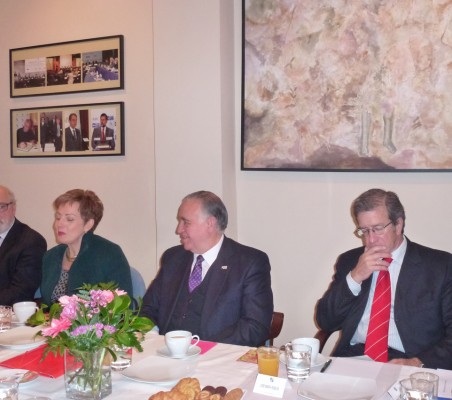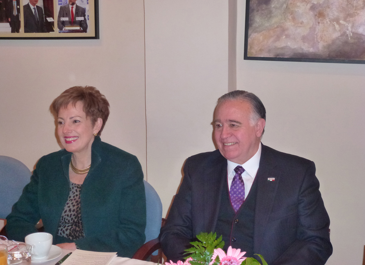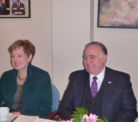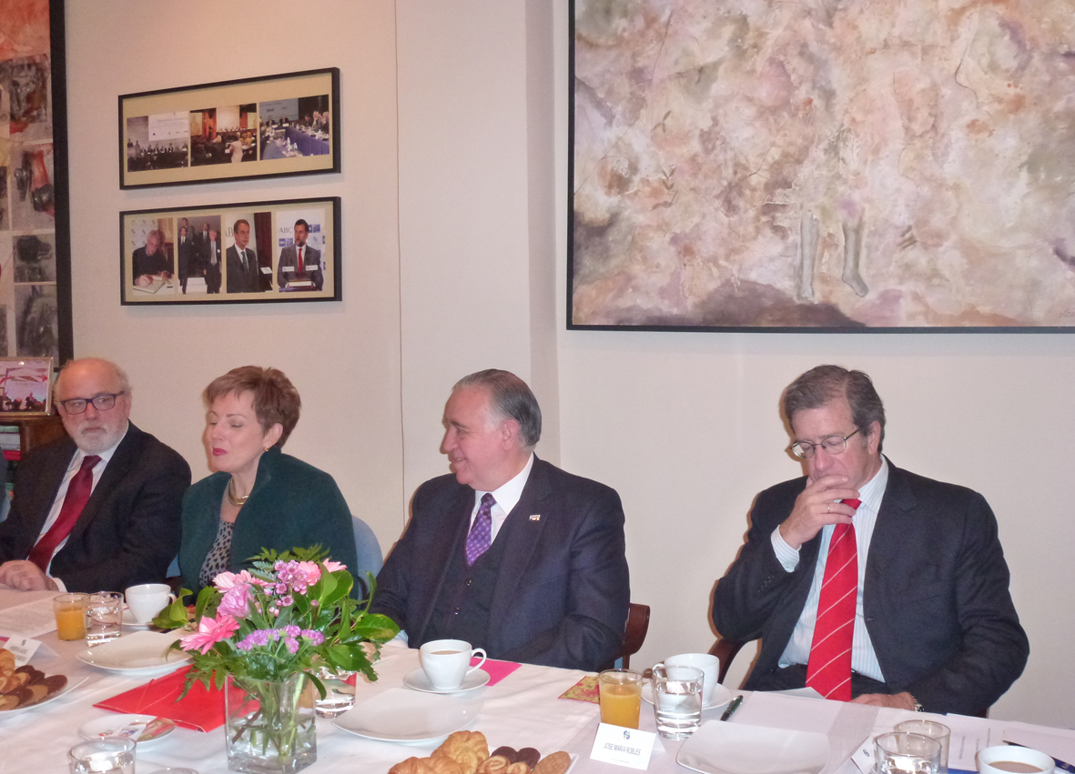 Intervinieron igualmente el resto de invitados manteniéndose un interesante y cordial coloquio y en el que se trataron temas como la prioridad del gobierno de Peña Nieto hacia América Latina (son el 1º inversor en América del Sur) en reunirse con los Presidentes de los países de su frontera sur. En este sentido la Embajadora destacó la creación de la Agencia Mexicana de Cooperación, que recibe ayudas de otras agencias similares de otros países para la cooperación conjunta. Asimismo hizo mención de la necesidad de la mejora de las infraestructuras hacia el sur.