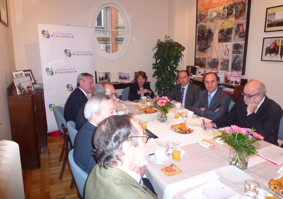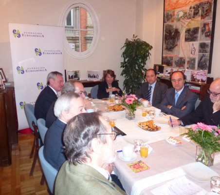 En el coloquio con los asistentes intervino Valentín Diez Morodo Presidente de COMCE y también Presidente del Sector Empresarial en la próxima reunión de la Alianza del Pacífico, cuya presidencia le corresponderá a México a partir del mes de mayo. Se le agradeció su incorporación para formar parte del Patronato de la Fundación, lo que lo refuerza al unirse al resto de personalidades que lo componen. El Sr. Diez Morodo, resaltó la buena marcha de la Alianza del Pacífico, a la que se incorporará en breve Costa Rica. Igualmente resaltó la importancia de dar apoyo a las PYMES.