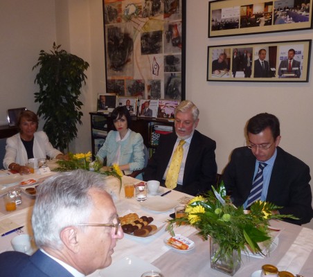 En julio recibimos al Presidente del ICO en uno de los tradicionales desayunos en nuestra sede. Tras la felicitación de todos los presentes por haber sido propuesto como Vicepresidente del BEI, comenzó su exposición con una breve explicación del funcionamiento del ICO, en el que destacó los siguientes puntos: Es un banco público, administrativamente adscrito al Ministerio de Economía y Competitividad, con naturaleza jurídica de Entidad de Crédito, y la consideración de Agencia Financiera del Estado, con personalidad jurídica, patrimonio y tesorería propios, así como autonomía de gestión para el cumplimiento de sus fines. No recibe dinero del Estado, sino que se financia, como cualquier otro banco, en los mercados nacionales e internacionales. Como banco público, las deudas y obligaciones que contrae, gozan frente a terceros de la garantía Estado español. Es el segundo emisor en España, después del Banco de España. La actuación del ICO se dirige principalmente a dos tipos de actividades: