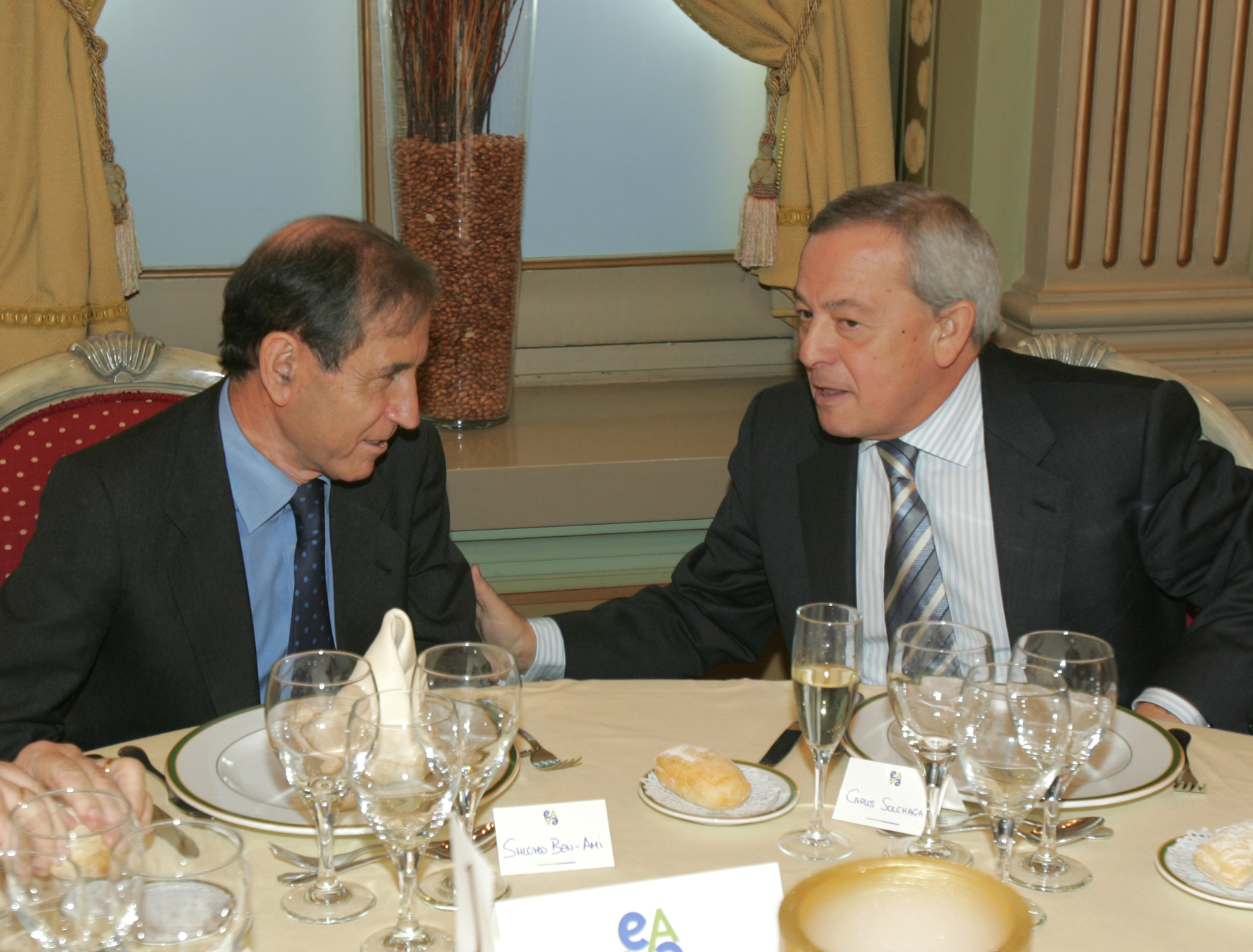 Nuevas formas de diplomacia en el mundo contemporáneo El historiador Shlomo Ben-Ami, que ha sido ministro de Asuntos Exteriores de Israel, primer embajador israelí en España, diputado laborista y testigo de excepción del conflicto judío-palestino como protagonista de la conferencia de los Acuerdos de Camp David, es en la actualidad vicepresidente del Centro Toledo de Estudios para la Paz que tiene su sede en Madrid. En su encuentro con la Fundación Euroamérica, en diciembre de 2006, habló de su reciente libro «Cicatrices de paz, heridas de guerra» en el que mantiene una actitud crítica con el gobierno de Tel Aviv, defiende la creación de un estado palestino y la búsqueda de un acuerdo por el cual Israel tenga unas fronteras reconocidas por el Derecho Internacional, lo que en su opinión contribuiría a la estabilidad en la zona.