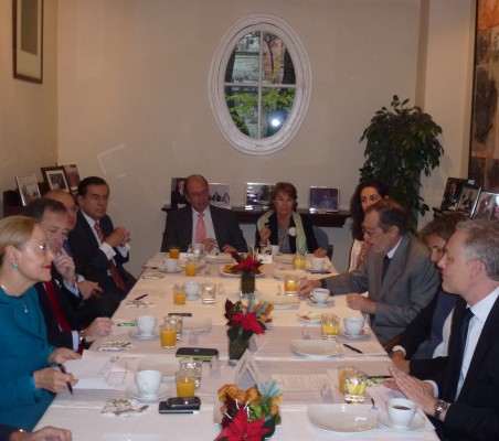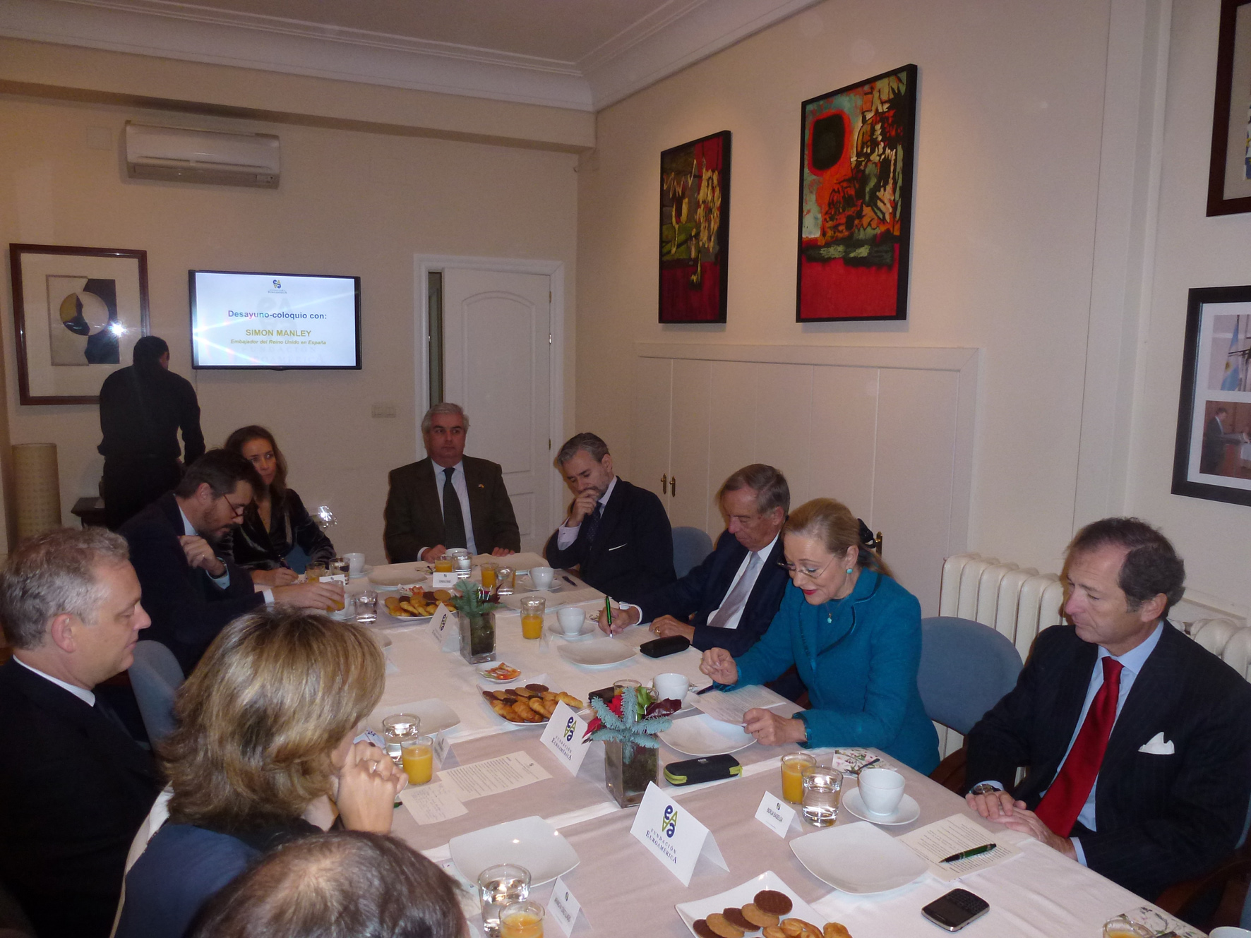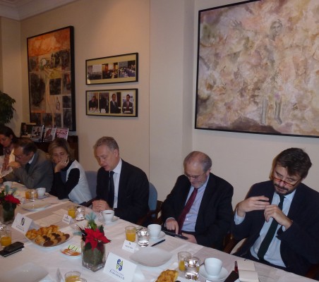 En diciembre, nos acompañó como invitado de honor en nuestros desayunos habituales el Embajador del Reino Unido en España, Sr. Manley. Comenzó haciendo una breve descripción de la política de su gobierno en materia de comercio, indicando que para ellos es prioritario crear un entorno favorable y sostenible para el crecimiento de sus empresas. Apuntó en ese sentido la bajada del impuesto de sociedades hasta el 20% durante el 2015, así como la apuesta en innovación, que es la clave del S. XXI. Igualmente han invertido en educación, para aumentar la calidad, tanto en colegios como en universidades (4 de las diez mejores universidades del mundo están en el Reino Unido) y lograr así que los jóvenes británicos tengan una buena preparación para entrar en las empresas. Destacó que este éxito radica en gran parte al carácter abierto de las universidades y a su relación con las empresas y con los antiguos alumnos. El aspecto que más destacó el Embajador Manley de la economía de su país es que se trata de una economía abierta, de ahí que un gran número de empresas extranjeras elijan Reino Unido como destino de sus inversiones. En esta línea destacó como ejemplo a las empresas españolas instaladas en su país, en diferentes áreas como las infraestructuras en líneas de ferrocarril, alta velocidad o aeropuertos, la energía, telecomunicaciones o banca. Insistió el Embajador en que una economía abierta es una economía competitiva y los empleos de los sectores más abiertos y competitivos son los mejores. En este sentido defiende que las reformas que fomente la Unión Europea, estén orientadas a la creación de una Europa más abierta y más competitiva, con más equidad y sostenibilidad a largo plazo. Mientras que en los últimos 6 años la economía de la India se ha incrementado un tercio y la de China un 60%, la economía en Europa ha sufrido un estancamiento. Para que Europa gane peso relativo en la economía, cada vez más globalizada, el Embajador Manley destacó algunas medidas: Simon Manley acabó su exposición hablando de la Agenda Canning que tiene como objetivo revitalizar las relaciones del R.U. con Latinoamérica, en especial los lazos comerciales y económicos. Destacó como medidas que se estaban tomando, la inclusión de nuevos países de la zona con los que reforzar estas relaciones, como El Salvador, Haití o Paraguay, así como el envío de un mayor número de diplomáticos o aumentar el intercambio de estudiantes británicos y latinoamericanos. Asimismo informó de la inversión de 63 millones de libras (5 millones anuales) a la zona, destinados al desarrollo de la ciencia y la innovación. Para acabar, comentó las enormes posibilidades que existen en los acuerdos entre empresas españolas y británicas en el comercio en América Latina. Tras esta introducción, se entablo un interesante diálogo del Embajador Manley con los asistentes al acto, quienes le agradecieron la franqueza de su exposición y le formularon un gran número de preguntas, tratándose varios temas como la exportación de modelos como la PPP -que tan implantados están en países como España o el Reino Unido- al resto del mundo, que ayuden al desarrollo de otras zonas; los retos en la educación en España; el papel del Reino Unido en la Unión Europea; la necesidad de una Europa unida, competitiva y sostenible para el desarrollo de nuestro continente y la reducción de la alta tasa de desempleo, etc. |