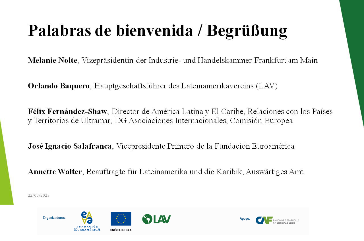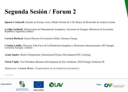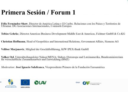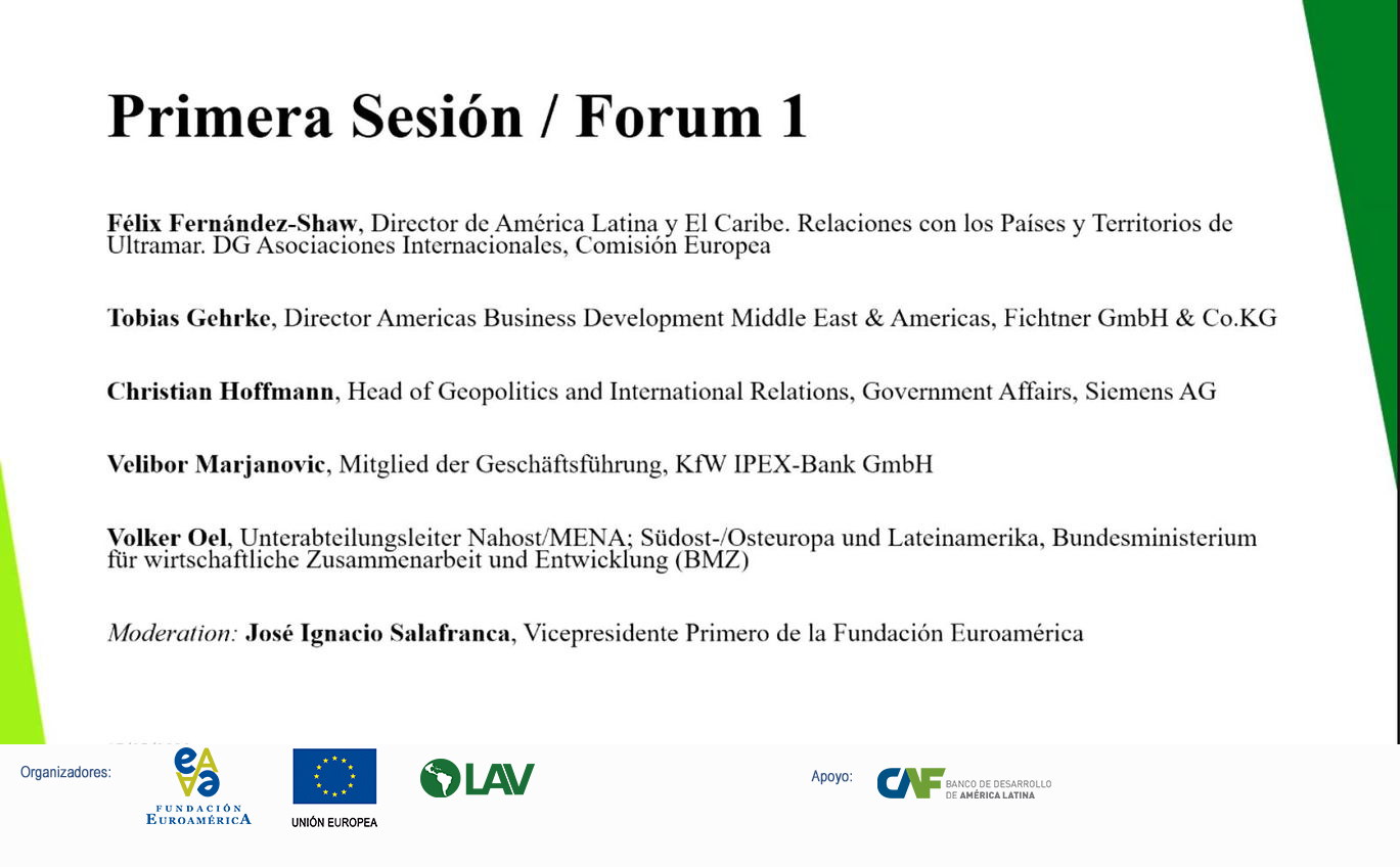 ProgramaFotosVídeoPresentaciones de los ponentes en construcción Sesión de inauguración: Sesión: Oportunidades para las empresas a ambos lados. Inversiones en sectores estratégicos. Agenda de Inversiones Global Gateway UE-ALC. Apuesta por la sostenibilidad. Conexión...