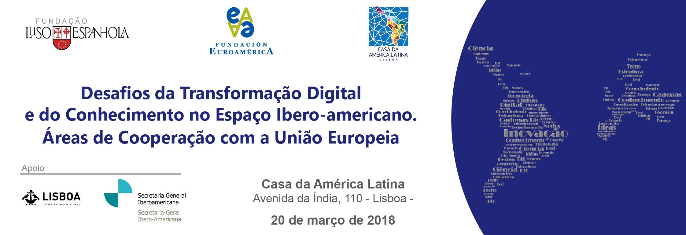 Primera Sesión: Cómo está transformando la revolución tecnológica la economía y la sociedad del S. XXISegunda Sessão: Inovação e Empreendedorismo como motor da competitividade. Cooperação entre a União Europeia e América Latina
