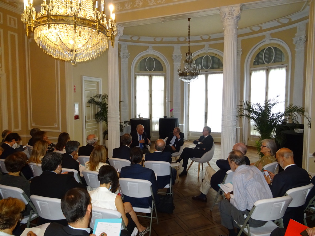 18.30h Cóctel Con posterioridad a la reunión del Patronato, celebrado el 15 de junio con la asistencia de patronos y colaboradores de la Fundación, representantes de embajadas e instituciones, se celebró este diálogo que fue presentado e introducido por Ramón Jáuregui como presidente de la Fundación.